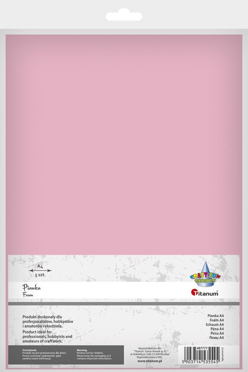 Arkusz piankowy Titanum Craft-Fun Series pianka dekoracyjna A4 5 szt. kolor: różowy jasny 5 ark. (6132)
