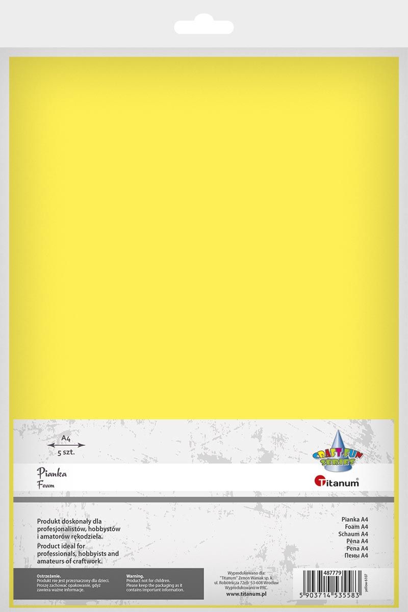 Arkusz piankowy Titanum Craft-Fun Series pianka dekoracyjna A4 5 szt. kolor: żółty 5 ark. (6107)