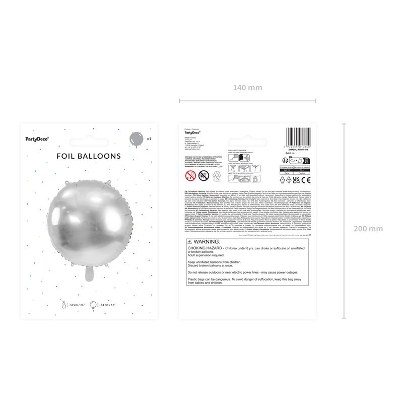 Balon foliowy okrągły Pastylka srebrny 24cal Partydeco (FB177-018)