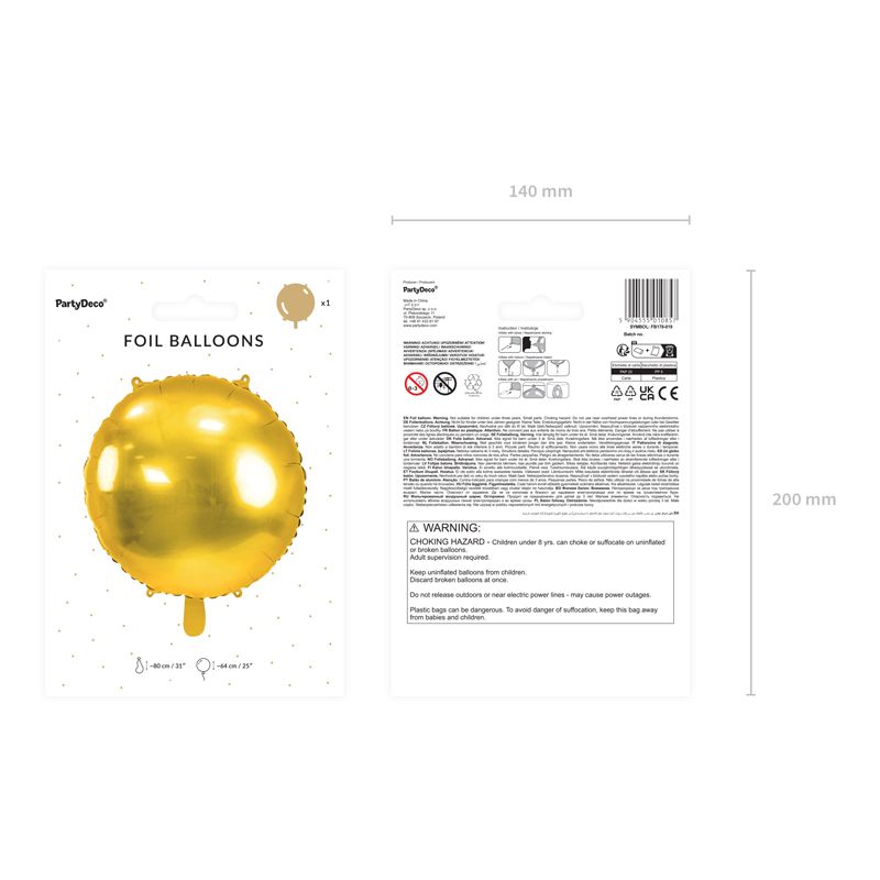 Balon foliowy okrągły Pastylka złota 31cal Partydeco (FB178-019)