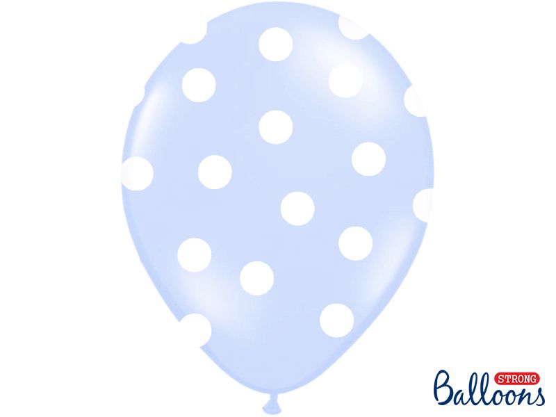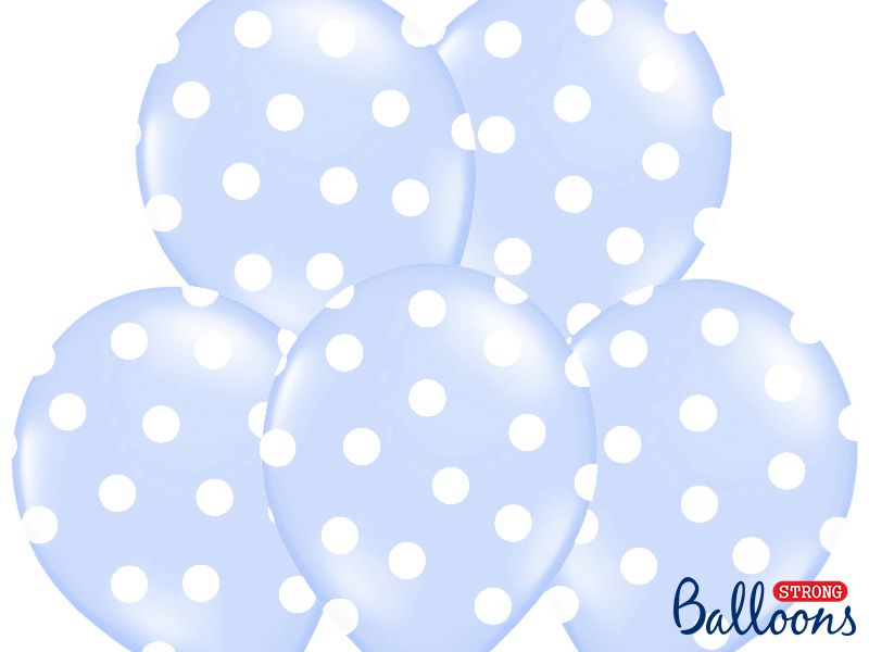 - balony Strong Kropki w kolorze Pastel Baby Blue, z białym, pięciostronnym nadrukiem