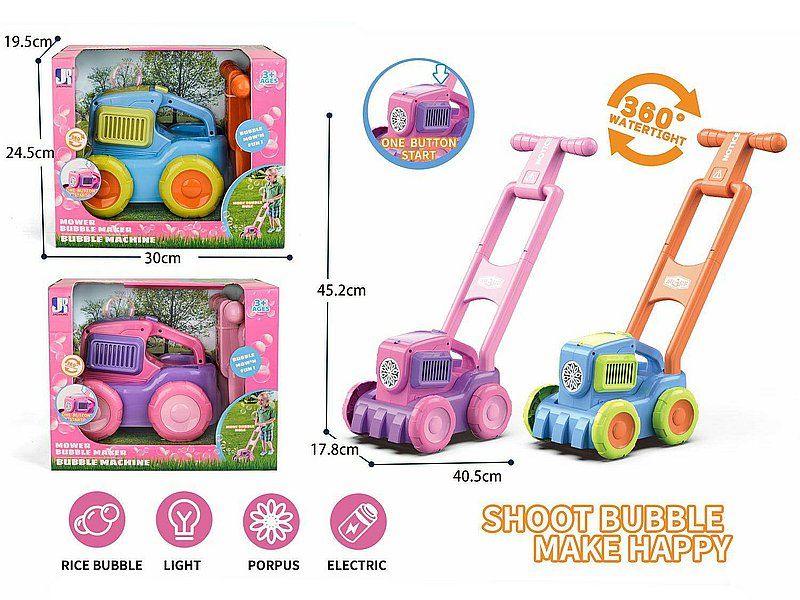 Dostępne: 4 Sztuk Lub zamów telefoniczne: 690 216 578kosiarka z bańkami mydlanymi, na baterie, światło, wodoszczelna, wym.rozłożonej 45x40,5x18cm; 30x24,5x19,5cm, Box