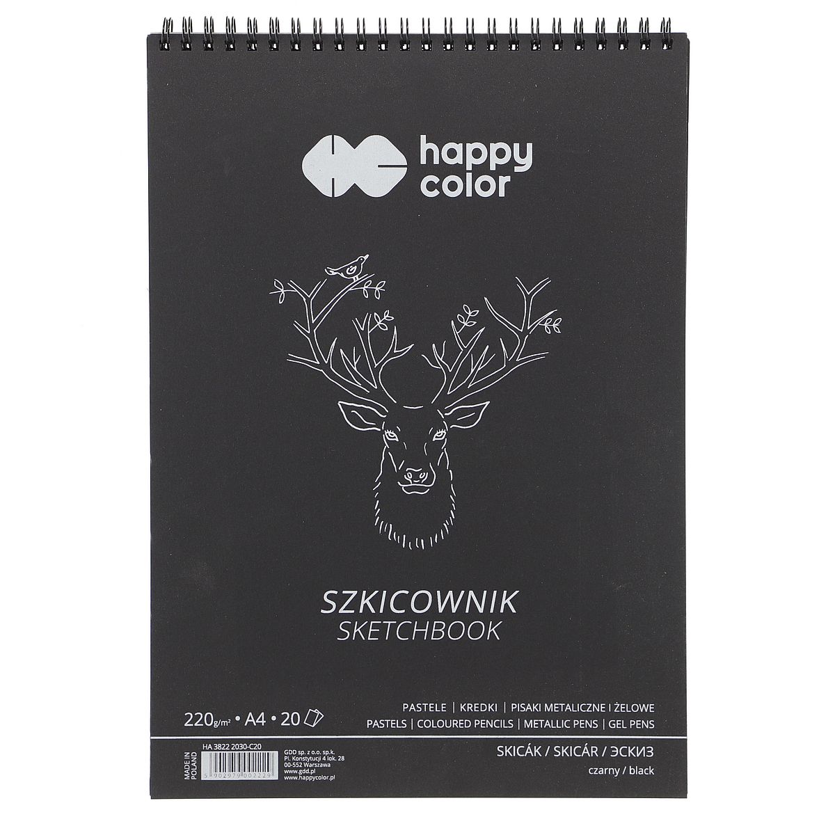 Blok artystyczny Happy Color szkicownik czarny A4 220g 20k (HA 3822 2030-C20)