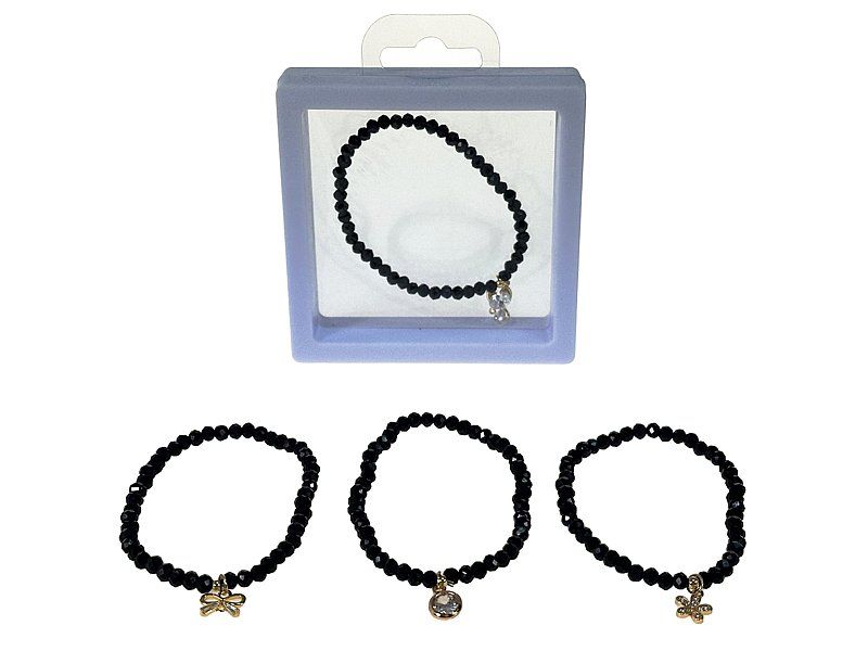 bransoletka śred.6cm, rozciągliwa, szklane koraliki z metalowym oczkiem, w ozdobnym pudełku; 9x9x2cm, W/B