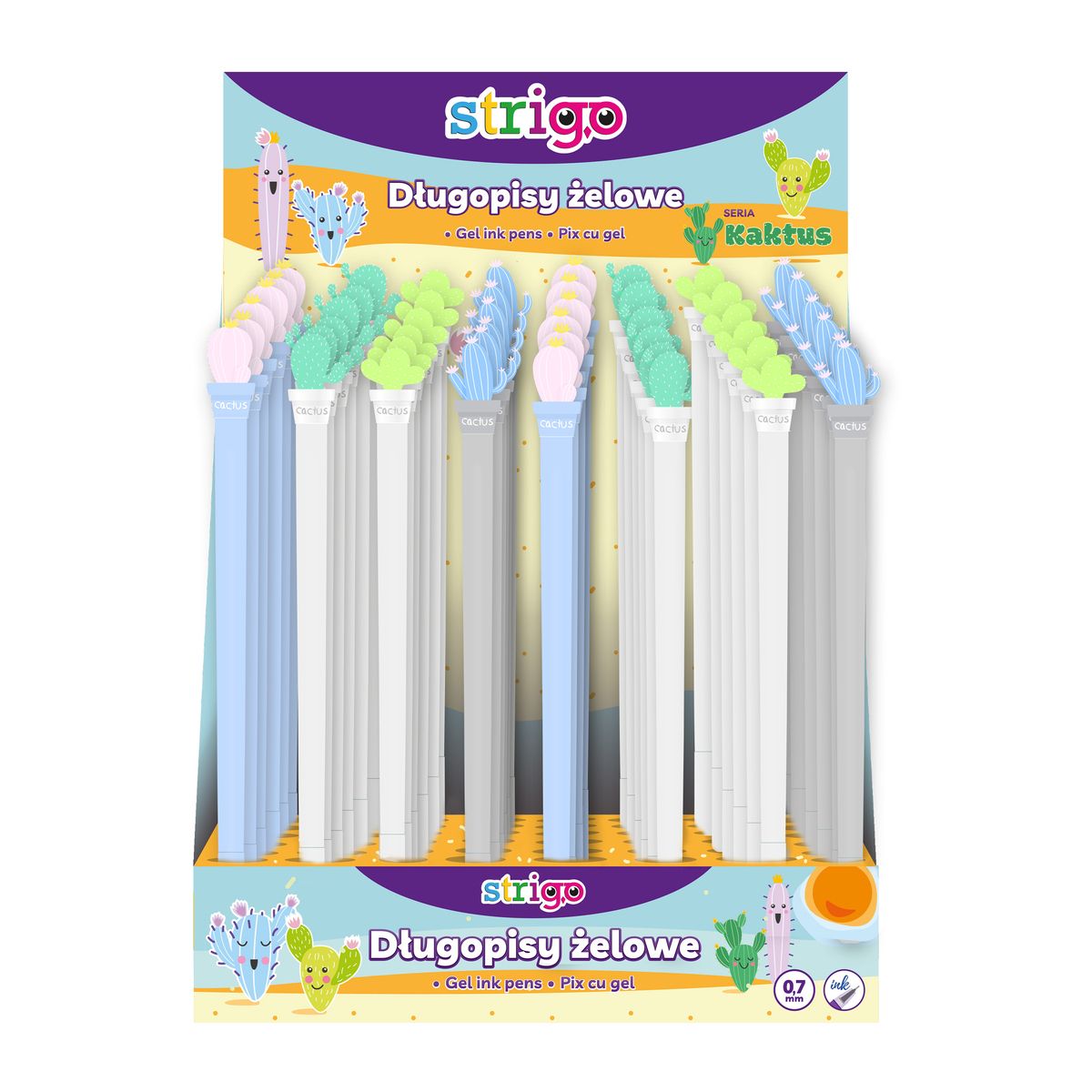 Długopis KAKTUSY żelowy wkład niebieski 0,5mm Strigo (SSC2231)