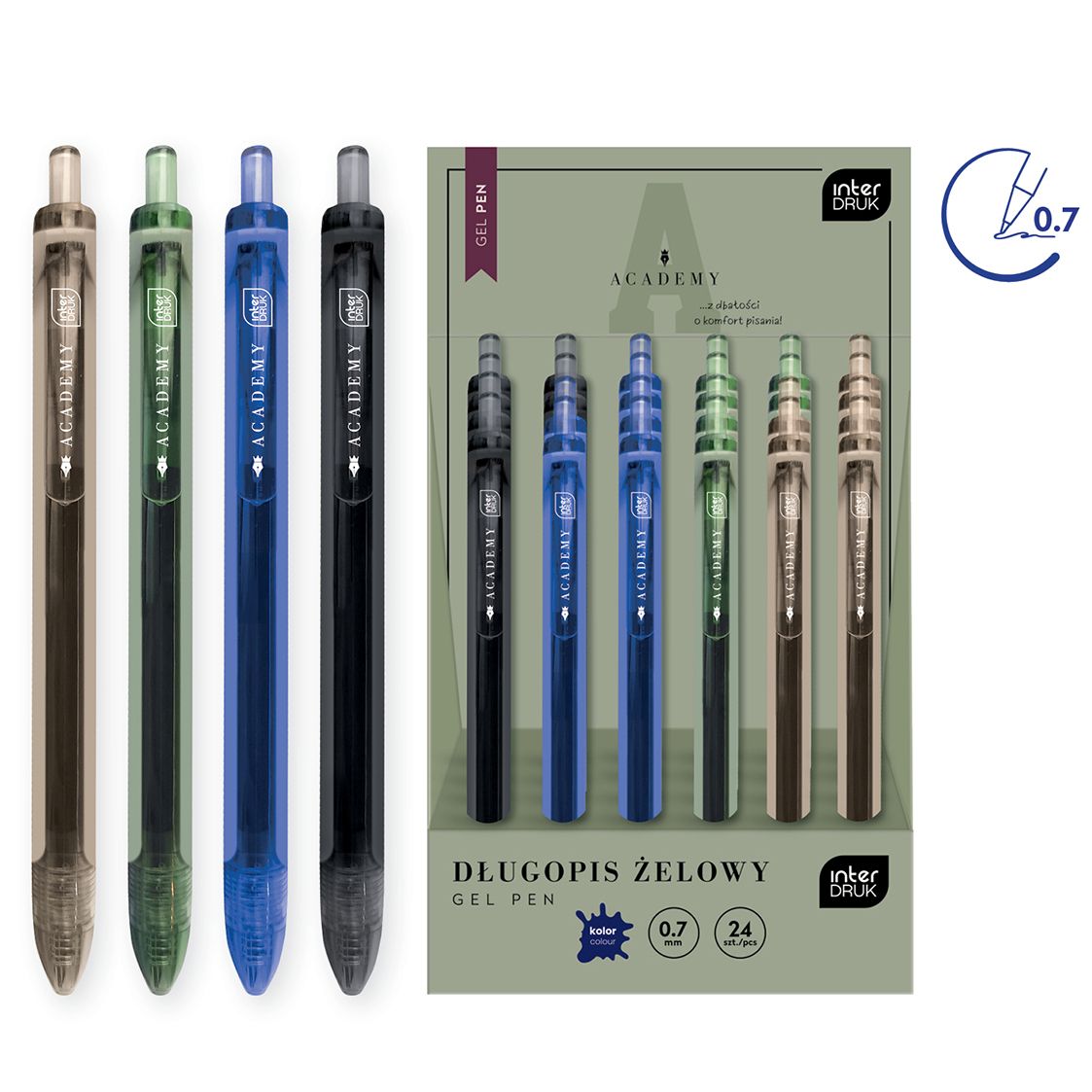 Długopis żelowy ACADEMY 0,7mm wkład niebieski 1,0mm Interdruk (5902277346759)