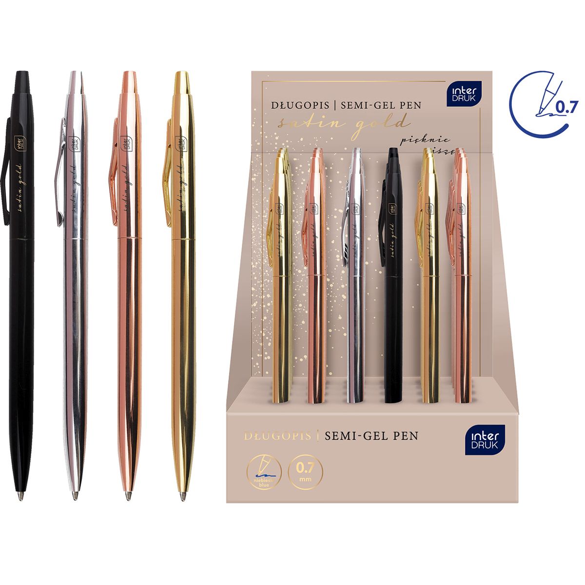 Długopis żelowy Satin Gold slim 1,00mm wkład niebieski 1,0mm Interdruk (5902277346834)