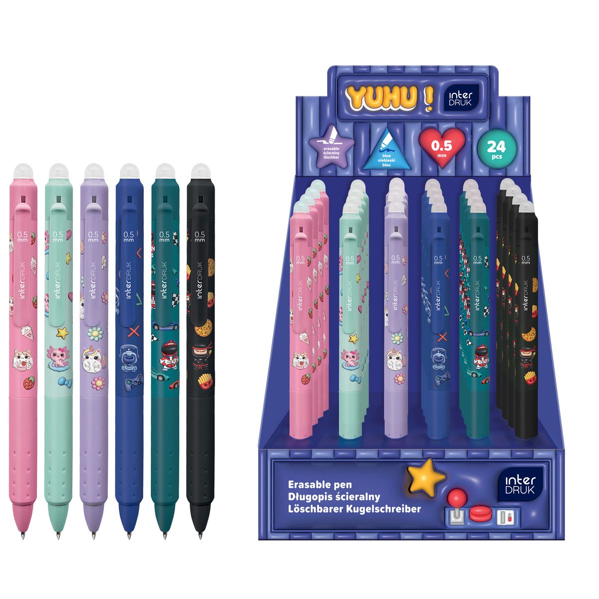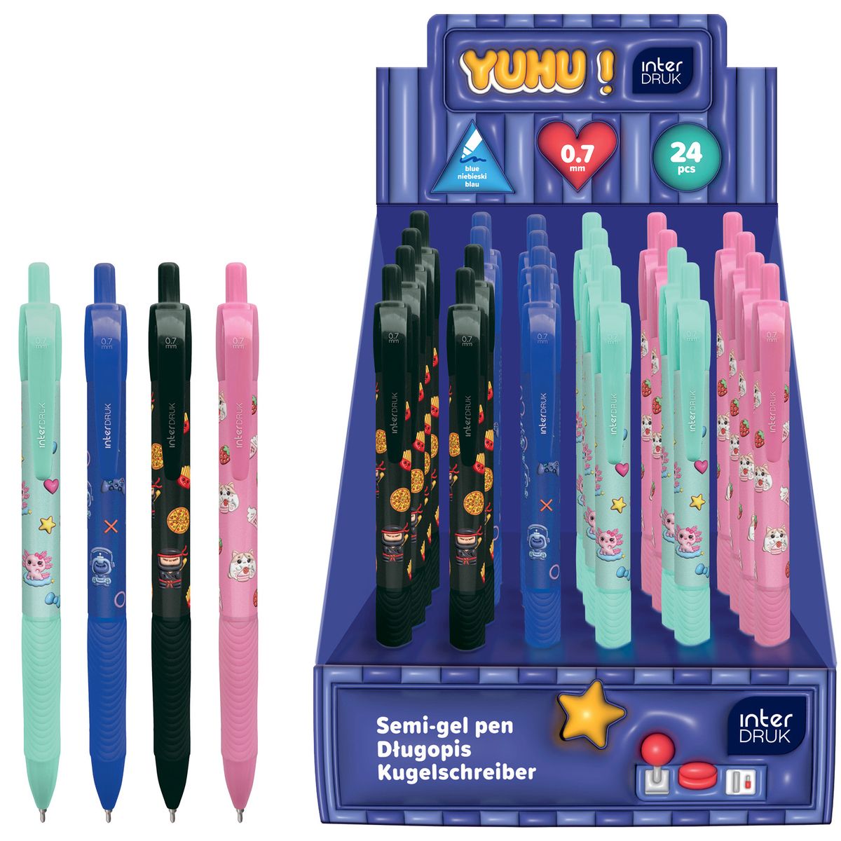 Długopis żelowy YUHU automatyczny z gripem wkład niebieski 0,7mm Interdruk (żelowy)