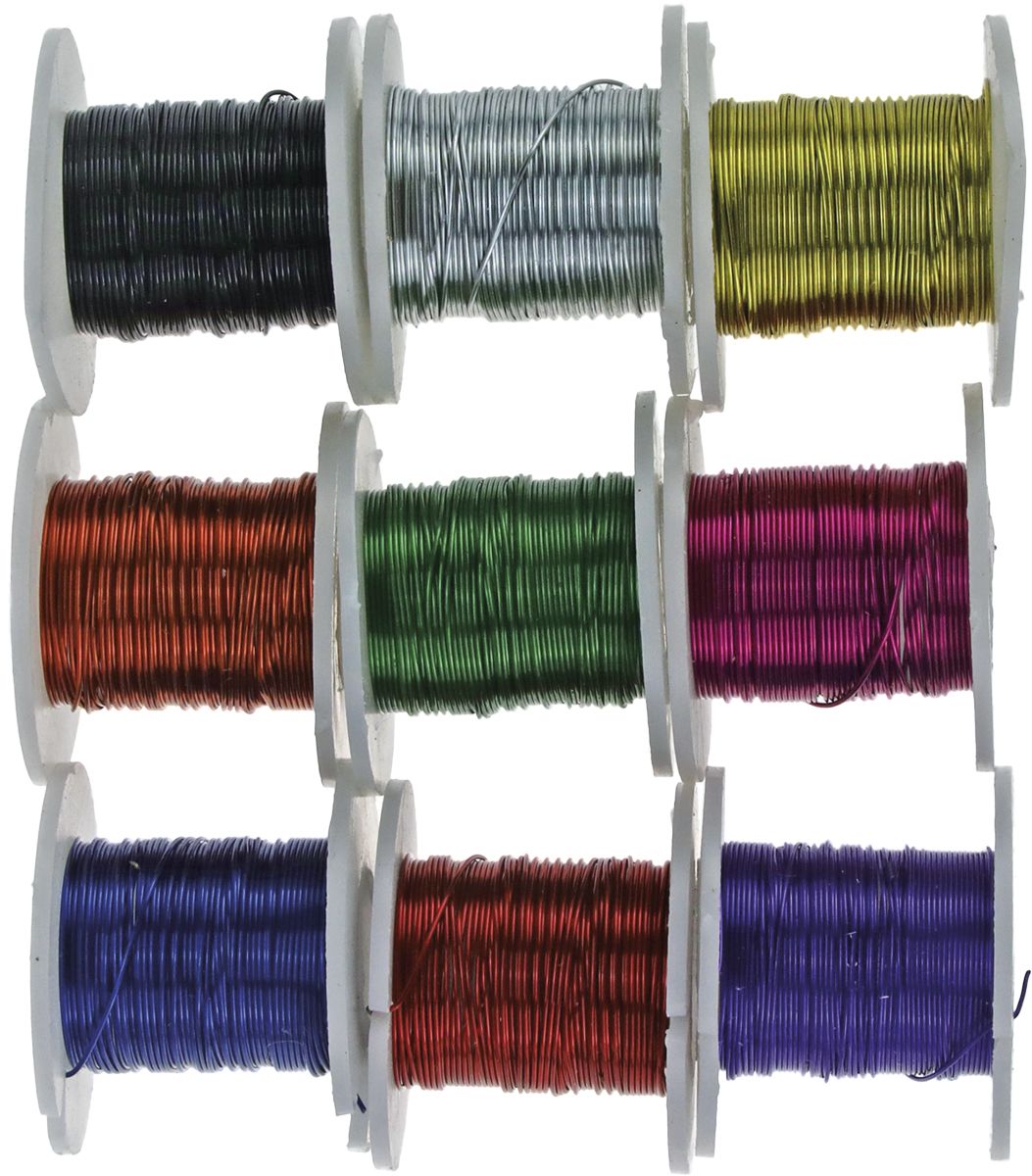 Dostępne: 1520 Sztuk Lub zamów telefoniczne: 690 216 578Druciki florystyczne o średnicy 0,3 mm i długości 3 m, 9 kolorów: czarny, srebrny, złoty, miedziany, zielony, fuksjowy, chabrowy, czerwony, fioletowy.