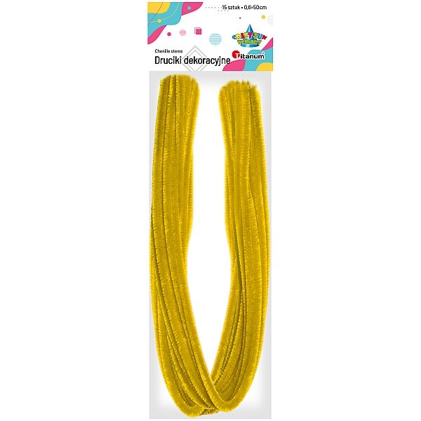 Druciki kreatywne, kolor: żółty, długość: 50 cm, szerokość: 0,6 cm. Blister zawiera 15 sztuk.