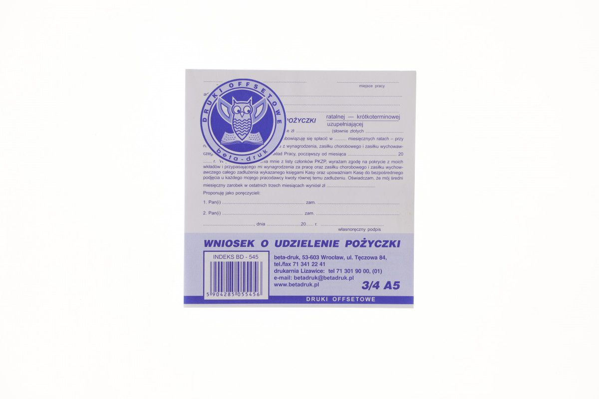 Druk kartonowy wniosek o pożyczkę A5 Beta Druk (PKZP)