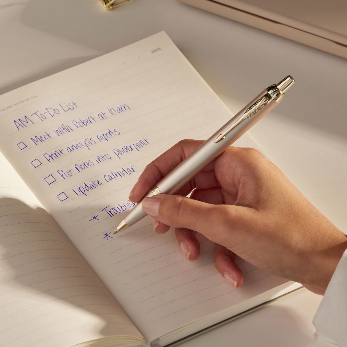 Dostępne: 10 Sztuk Lub zamów telefoniczne: 690 216 578Funkcjonalny i elegancki długopis Parker IM, zaprojektowany z myślą o młodych profesjonalistach, sprawdzi się doskonale w każdym miejscu pracy. Niezawodne i niezwykle stylowe artykuły piśmiennicze Parker IM Monochrome o metalowej konstrukcji zapewniają luksusowe wrażenia podczas pisania. Monochromatyczne wzornictwo w kolorze szampańskim – od wykończenia po końcówkę – to esencja elegancji. Dzięki ponad stuletniemu doświadczeniu i kunsztowi marki Parker ten długopis zachwyca charakterystycznym wzornictwem, a metalowe elementy ozdobione powłoką wykonaną techniką PVD zapewniają wyjątkową odporność na zużycie i korozję. Ten nowoczesny długopis jest napełniany nabojami do długopisu QuinkFlow, zapewniając wyraźne i równomierne linie podczas codziennego pisania. A dzięki eleganckiemu opakowaniu prezentowemu długopis Parker IM Monochrome stanowi niezapomniany prezent.