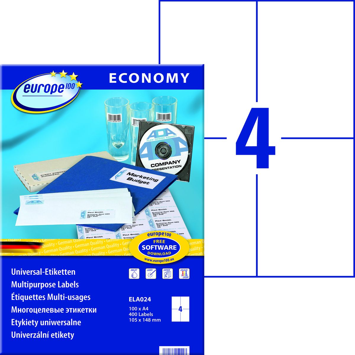 Etykieta samoprzylepna Economy Europe100 A4 biały [mm:] 105x148,5 Avery Zweckform (ELA024)