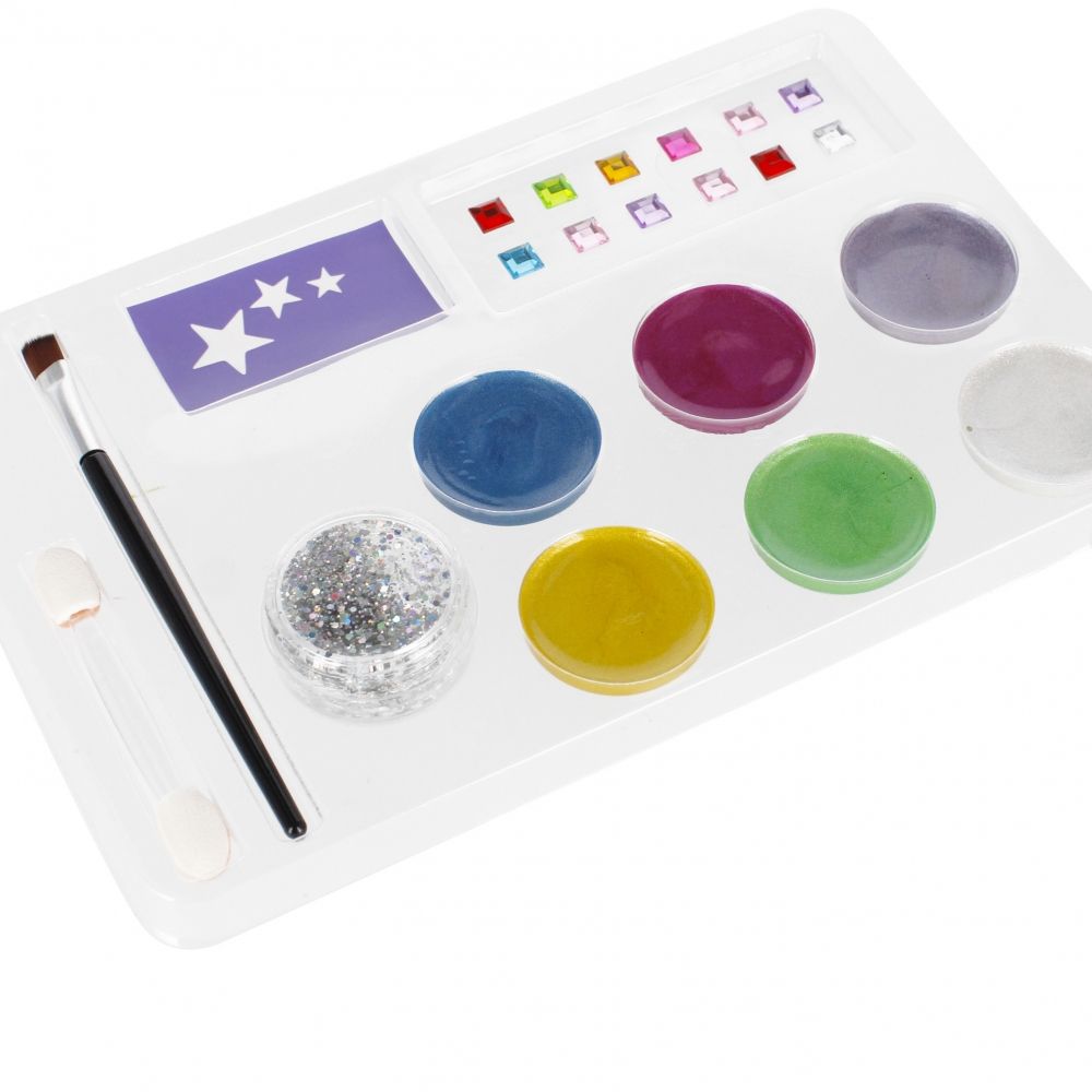 Dostępne: 19 Sztuk Lub zamów telefoniczne: 690 216 578Zalety produktu: farby do malowania twarzy, ciała 6 kolorów plus brokat plus akcesoria STARPAK. Farby w 6 kolorach: niebieska, magenta, j.fioletowa, żółta, zielona, srebrna. Farby łatwo zmywalne, bezpieczne przed użyciem zapoznaj się z opisem produktu znajdującym się na opakowaniu . Dzięki temu zestawowi kreatywność dziecka nie zna granic Każda farbka zapakowana w osobnym pojemniczku, brokat w kolorze srebrnym w plastikowym, zakręcanym pojemniczku zabezpiecza przed jego wysypaniem, mały podwójny aplikator do malowania oraz mały pędzelek z pewnością spełnią oczekiwania. Zawartość zestawu: 6 kolorów farb do malowania twarzy, 1x brokat sypki srebrny, 1x pędzelek, 1x aplikator do malowania, 12x ozdobne naklejki w kształcie kwadratu. Wymiary opakowania wys. x szer. x gł. cm 23x21x1. Waga opakowania kg. 0,06 kg. Nie odpowiednie dla dzieci poniżej 3 lat. Pakowane na blistrze. Pakowanie iner 12 szt. Karton 144 szt.