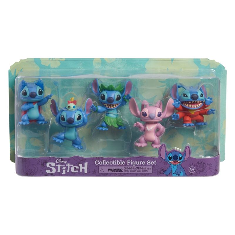 W zestawie: Stitch Superbohater, Stitch i Scrump, Stitch Kosmita, Stitch w tańcu Hula i Angel.