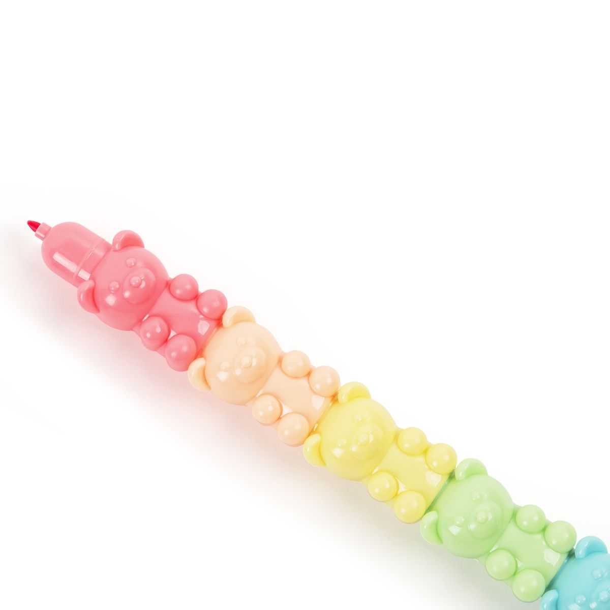 Flamastry w kształcie niedźwiadkowej wieży w 5 pastelowych kolorach: różowym, brzoskwiniowym, żółtym, zielonym i niebieskim. Zmieniając ustawienie niedźwiadków można bawić się kolorami i stworzyć własną, pastelową wieżę! Flamastry niedźwiadki to niezbędny przedmiot na każdej lekcji. Idealnie sprawdzą się do zaznaczania, podkreślania, pisania, dekorowania i rysowania. Ich unikalny kształt czyni flamastry niezwykle poręcznymi w użyciu jak i w transporcie.