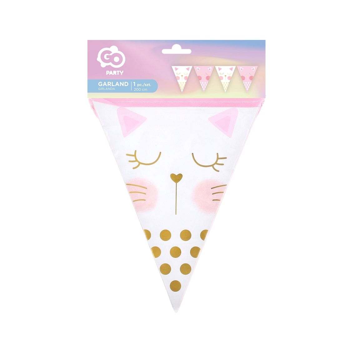 Różowa girlanda z flagami z nadrukiem w słodkie kotki. Prześliczna dekoracja na babyshower, urodziny dziewczynki oraz inne okazje.