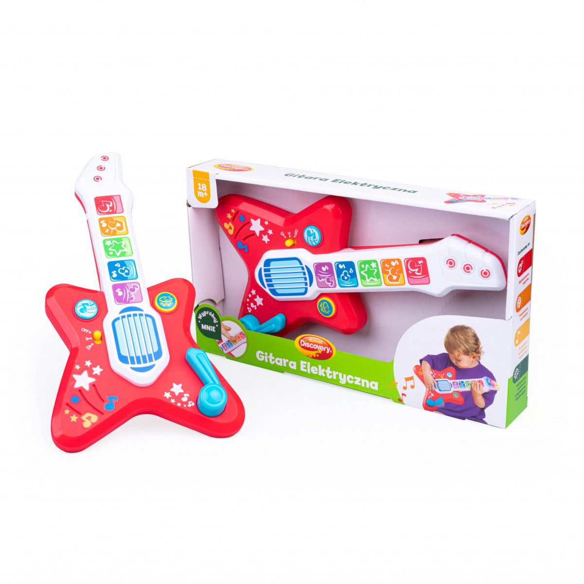 Dostępne: 3 Sztuk Lub zamów telefoniczne: 690 216 578Daj się porwać magii dźwięku i graj na gitarze jak prawdziwa gwiazda rocka! Zabawka do złudzenia przypomina pełnowymiarowy instrument muzyczny. Znajdziemy tu gryf z dotykowymi przyciskami oraz wajchę, która podkręca dźwięk, przenosząc grę na zupełnie inny wymiar! Do wybory mamy 2 tryby zabawy oraz regulację głośności, dzięki czemu dostosujemy zabawkę do indywidualnych potrzeb małego gitarzysty. Grze na instrumencie towarzyszą migające światełka.