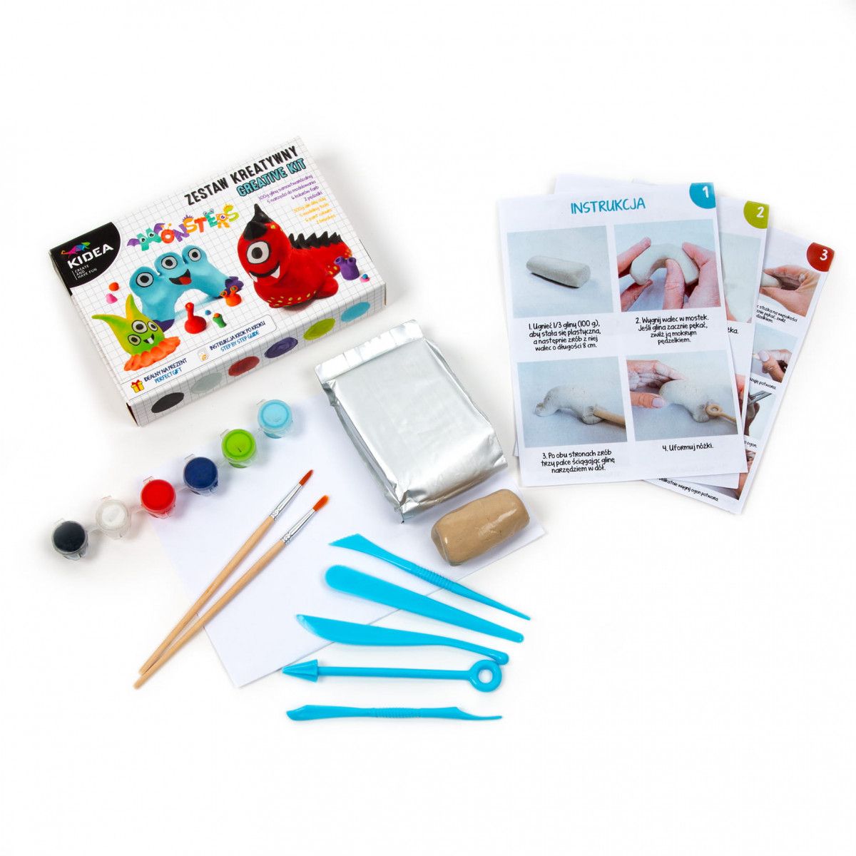Glina samoutwardzalna misie - zestaw kreatywny od Kidea! W opakowaniu znajduje się 300 g gliny samoutwardzalnej, 6 kolorów farbek, 5 narzędzi rzeźbiarskich, dwa pedzelki różnej wielkości oraz instrukcja "krok po kroku". Podążając za krokami instrukcji i przy pomocy narzędzi można ulepić trzy zwierzaki - kotka, szopa oraz misia! Niezwykle kryjące farbki o pastelowych barwach nadają figurkom uroczy charakter. Gotowe figurki można podarować bliskiej osobie lub udekorować nimi na przykład biurko. Zestaw glina samoutwardzalna misie to świetny pomysł na wspólną, kreatywną zabawę z dzieckiem lub na wyjątkowy prezent.