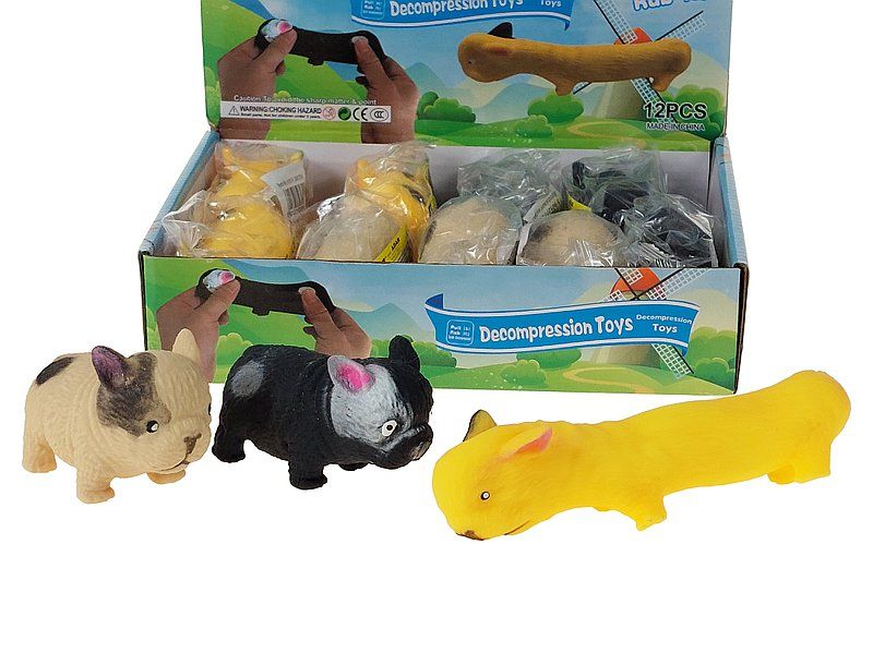 gniotek pies 9x6x4cm, z piaskiem, display 12szt; 24x18x5cm, Box