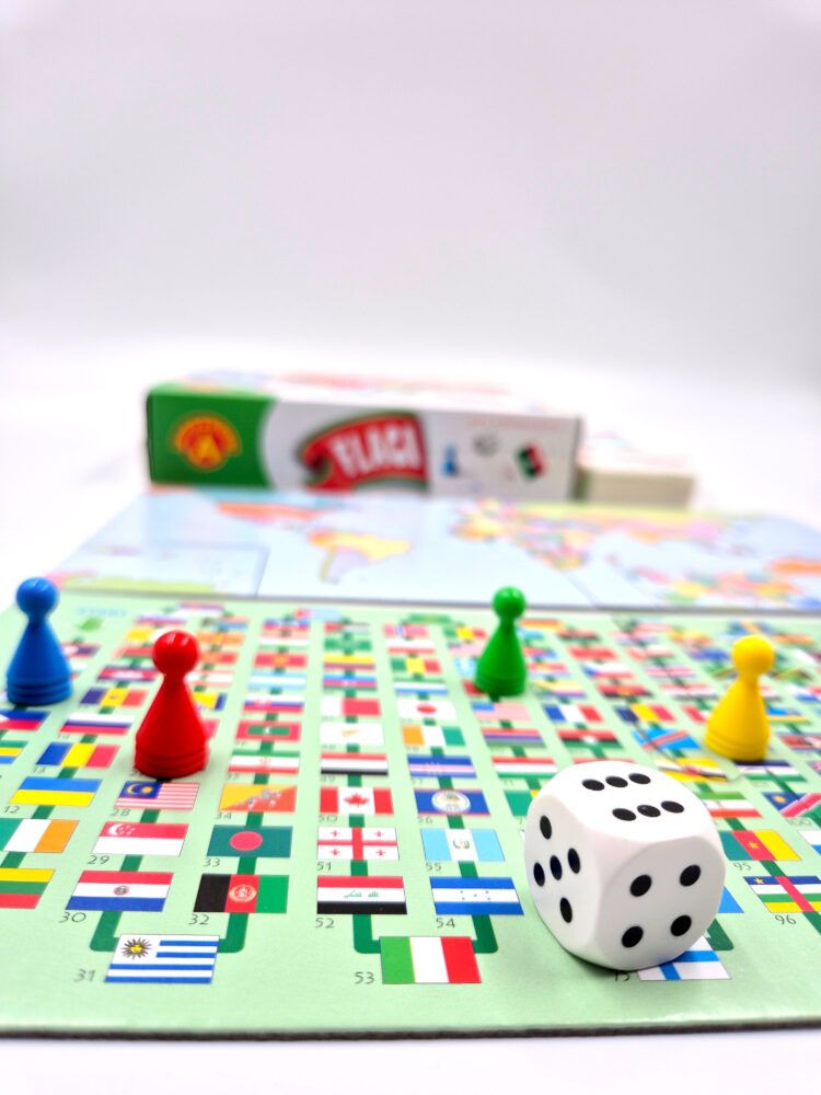 Zanurz się w emocjonującą przygodę, która łączy świetną zabawę z nauką! Gra „Jakie to Flagi?” to idealna rozrywka dla całej rodziny, umożliwiająca poznanie flag państw, ich lokalizacji na mapie, a także stolic, powierzchni i języków. Każda prawidłowa odpowiedź przynosi punkty, a zwycięża ten, kto zbierze ich najwięcej. Trzy warianty gry sprawiają, że nigdy się nie znudzisz! To nie tylko zabawa, ale również doskonała okazja do budowania więzi rodzinnych i sprawdzenia swojej wiedzy geograficznej. „Jakie to flagi?” to edukacyjna gra planszowa, która przynosi radość i rozwija umiejętności każdego uczestnika. Zawartość opakowania Plansza – flagi – 1 szt., Plansza – mapa – 1 szt, Karty – 110 szt, Pionki – 4 szt, Kostka do gry - 1 szt, Instrukcja