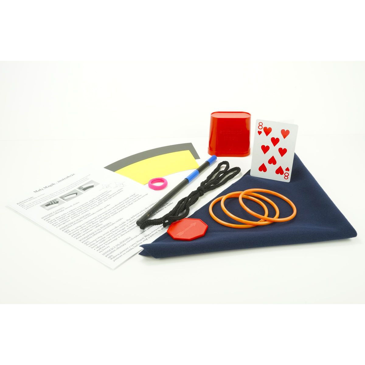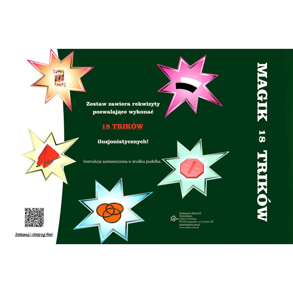 - ZAWARTOŚĆ: – rekwizyty pozwalające na wykonanie 18 trików iluzjonistycznych