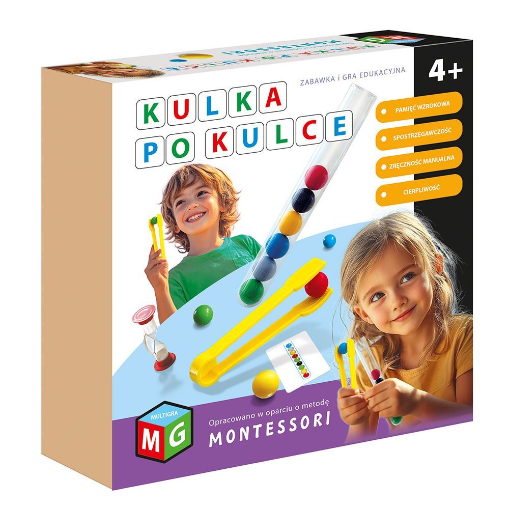 Dostępne: 6 Sztuk Lub zamów telefoniczne: 690 216 578„Kulka po kulce” to nie tylko świetna gra i zabawka zręcznościowa, ale także doskonałe narzędzie edukacyjne, które rozwija kluczowe umiejętności zgodnie z filozofią Montessori!