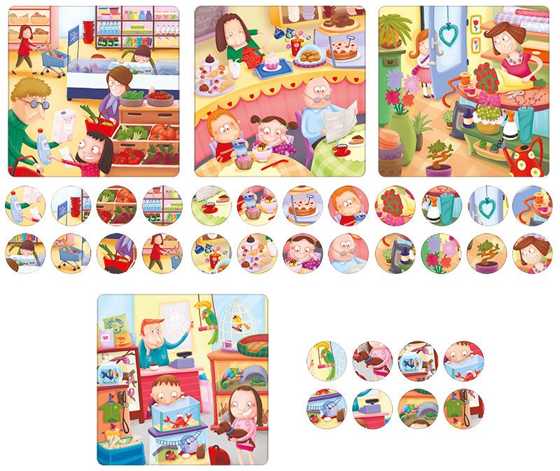 Zestaw edukacyjny „Szukaj w sklepie” składa się z 4 plansz, a także 32 plakietek z przedmiotami, które możesz znaleźć w poszczególnych pomieszczeniach w sklepie. Dzieci po kolei analizując swój rysunek, dobierają elementy pasujące do swojej planszy. Zestaw edukacyjny „Szukaj w sklepie” uczy myślenia, rozwija zdolność kojarzenia, identyfikowania poszczególnych przedmiotów i ich przeznaczenia. Zestaw zawiera: - 4 plansze - 32 plakieteki - instrukcja