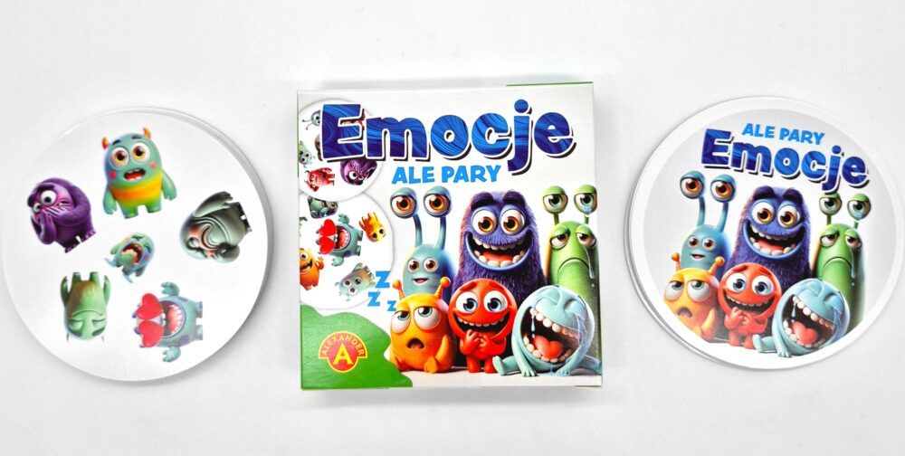 „Ale Pary – Emocje” to wyjątkowa gra, która poprzez zabawę, może pomóc dzieciom zrozumieć, co czują i pokazać, jak radzić sobie z różnymi emocjami. Gra polega na znalezieniu wspólnego obrazka – przedstawiającego emocję – na dwóch kartach. Ale uwaga! Emocje mogą różnić się wielkością, co sprawia, że wyzwanie jest jeszcze większe. Gra toczy się w dynamicznym tempie, więc potrzebna jest koncentracja i szybka reakcja.