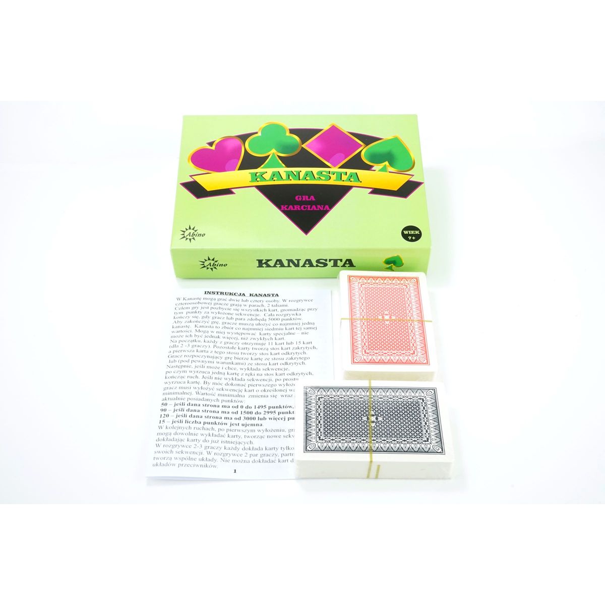 Dostępne: 4 Sztuk Lub zamów telefoniczne: 690 216 578Kanasta to klasyczna gra karciana, która zapewnia wiele godzin rozrywki. Zestaw zawiera karty oraz szczegółową instrukcję, dzięki której łatwo można nauczyć się zasad gry. Idealna na wieczory z rodziną i przyjaciółmi, rozwija strategiczne myślenie i planowanie. W grę mogą grać dwie lub cztery osoby, co czyni ją wszechstronną i odpowiednią na różne okazje. Graj, zbieraj punkty i ciesz się emocjonującymi rozgrywkami!