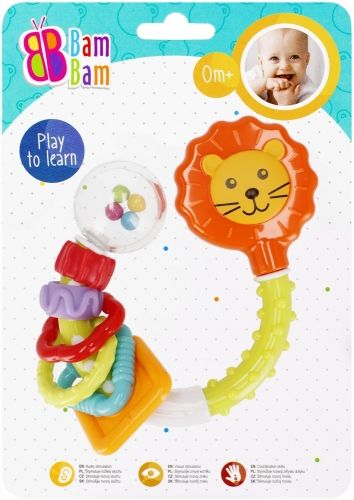 Dostępne: 4 Sztuk Lub zamów telefoniczne: 690 216 578GRZECHOTKA LWIĄTKO: Grzechotka Lew BAM BAM o stonowanej kolorystyce dostarcza wiele radości dziecku już od narodzin. Potrząsanie zabawki, wywołuje charakterystyczne dźwięki uwrażliwiając je na rozróżnianie ich natężenia. Kolorowe krążki oraz kuleczki w przeźroczystej kuli na pewno zaciekawią malucha . Zabawka rozwija zmysł wzroku, dotyku, słuchu oraz zdolności manualne dziecka. Wymiary/waga/baterie: wymiary produktu dł. x wys. x gł. cm : 12x13x4, wymiary opakowania dł. x wys. x gł. cm : 15x20x4, waga produktu bez opakowania kg : 0,07 kg, waga produktu w opakowaniu kg : 0,09 kg, nie wymaga zasilania bateriami. Zabawka przeznaczona dla dzieci w wieku: 0m . Pakowana na blistrze. W kartonie zbiorczym po 24 szt.