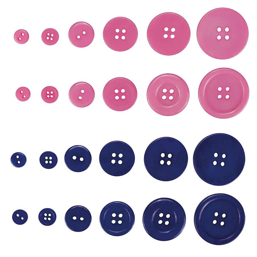 Dostępne: 189 Sztuk Lub zamów telefoniczne: 690 216 578Guziki plastikowe, okrągłe, średnica: 8/10/15/20/25/30mm, 4 dziurki, 2 kolory: różowy, granatowy. 30 g.