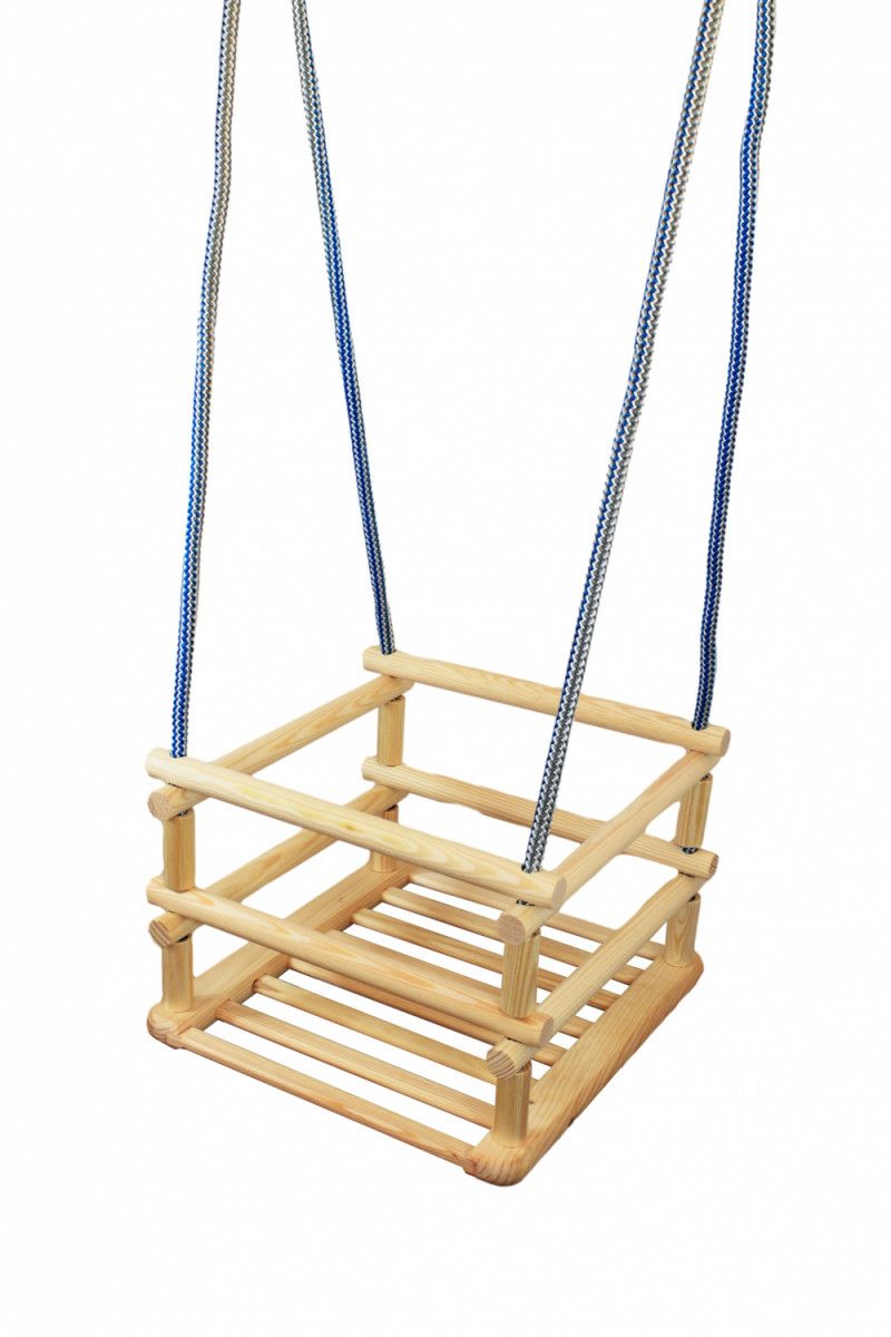 Drewniana huśtawka jest świetnym sposobem na dostarczenie naszym pociechom radości. Huśtawka drewniana jest zabawką, która dostarcza mnóstwa frajdy ale również wymaga aktywności ruchowej, dzięki czemu dziecko rozwija zmysł równowagi oraz koordynację. Huśtawka wykonana jest w całości z naturalnego nieimpregnowanego drewna. Dzięki zastosowaniu szczebelków zabezpieczających dziecko chronione jest przed wypadnięciem z siedziska,zatem huśtawka jest w pełni bezpieczna. Huśtawka zapewni wiele godzin świetnej zabawy zarówno w ogrodzie jak i w domu, nawet podczas niekorzystnych warunków pogodowych – a przede wszystkim, również w sezonie jesienno-zimowym. W huśtawce zastosowano grube wytrzymałe liny.