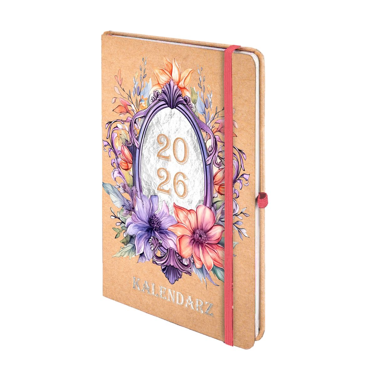Dostępne: 4 Sztuk Lub zamów telefoniczne: 690 216 578format: A5, wymiary okładki: 210x144 mm, układ: dzień na stronie, ilość stron:144 , oprawa: twarda z wyczuwalną strukturą , materiał: papier, gramatura papieru: 80g, kolor papieru: chamoise, dodatki: plan roku 2026, skorowidz adresowy, notatki, pionowa gumka zamykająca: wstążka: bordo, czarny, wyklejka: czarna
