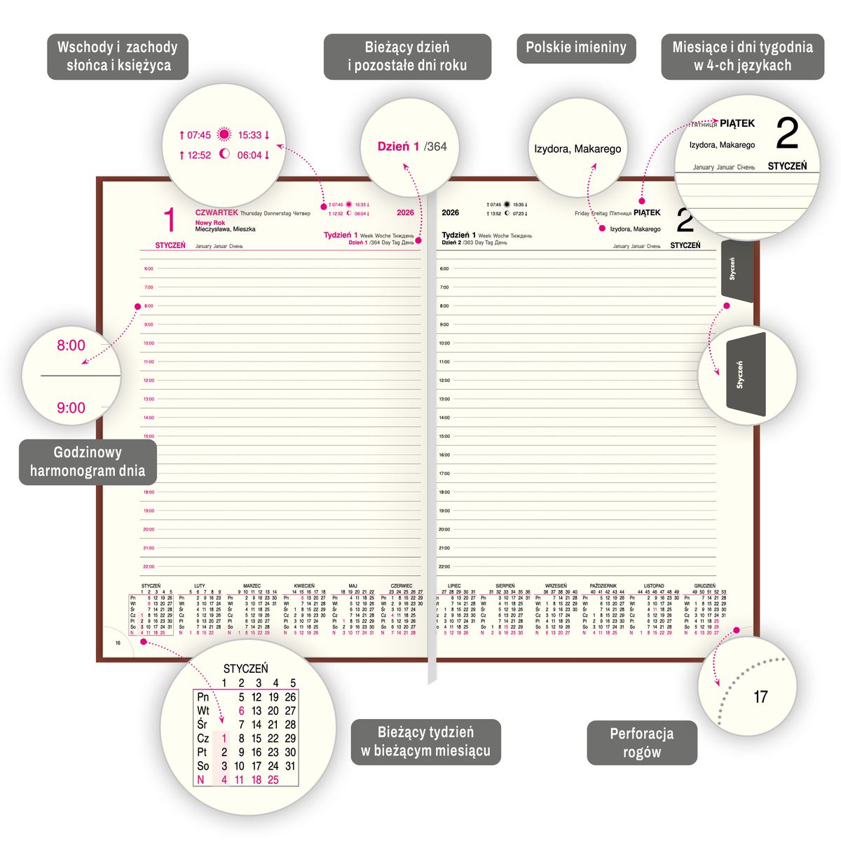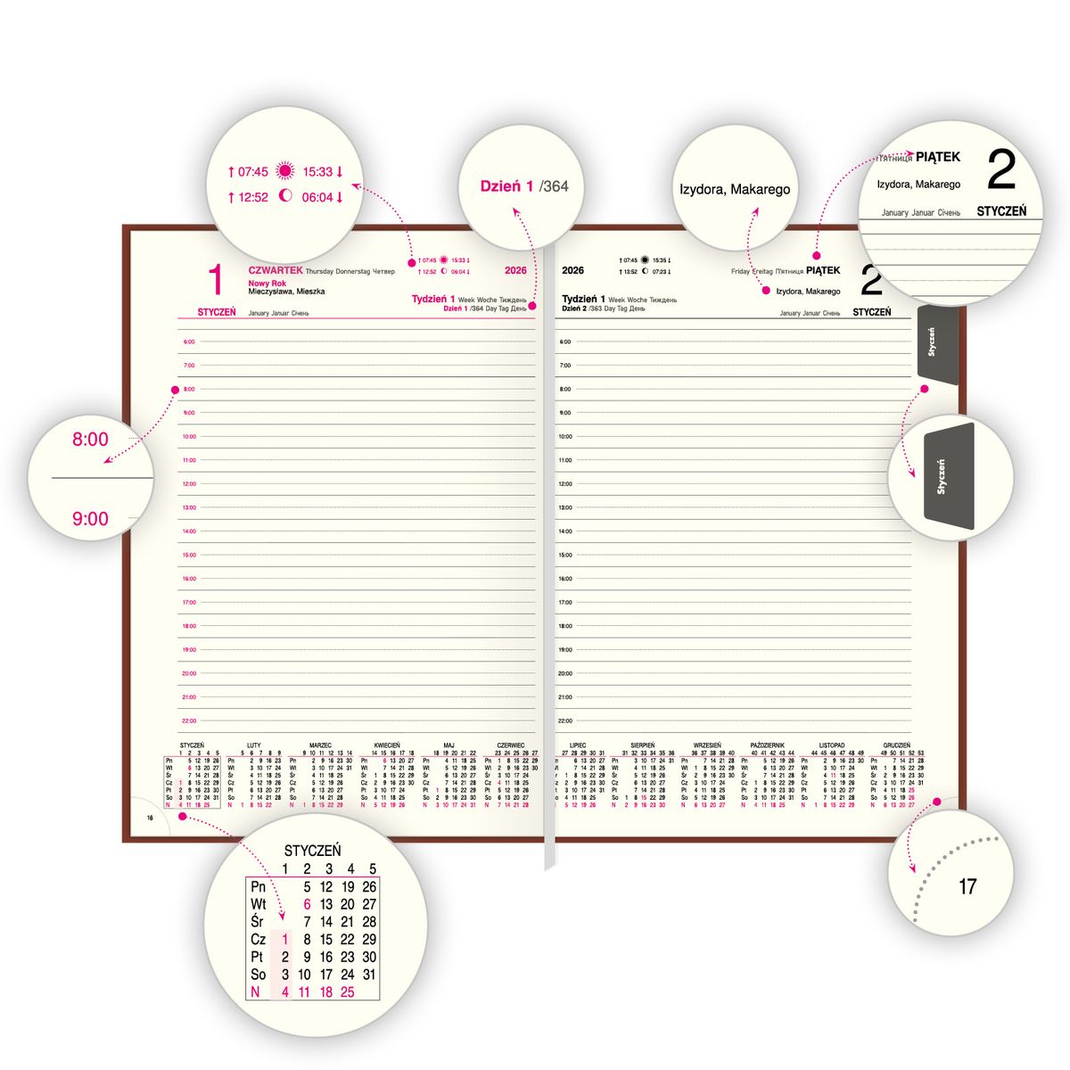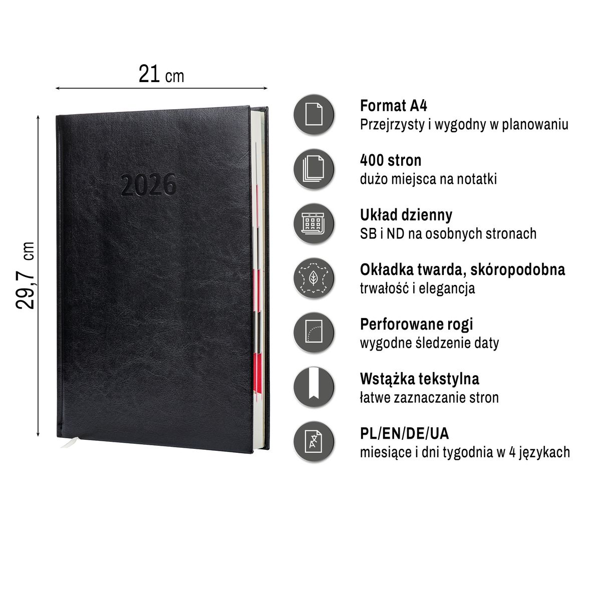Kalendarz książkowy (terminarz) A4 Press (DZIENNY)