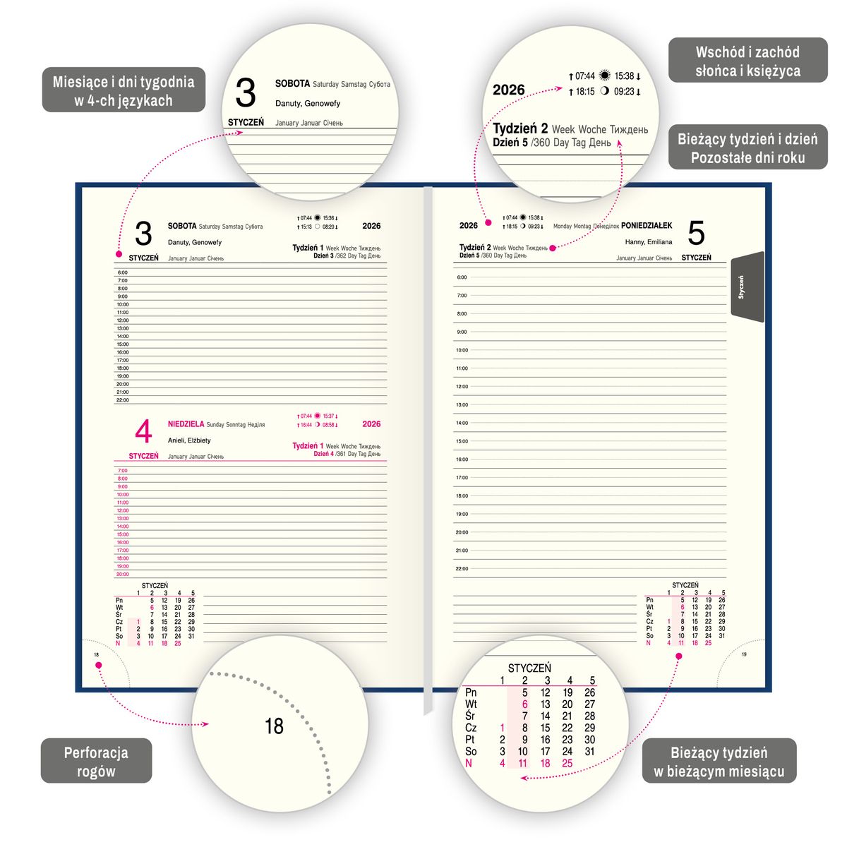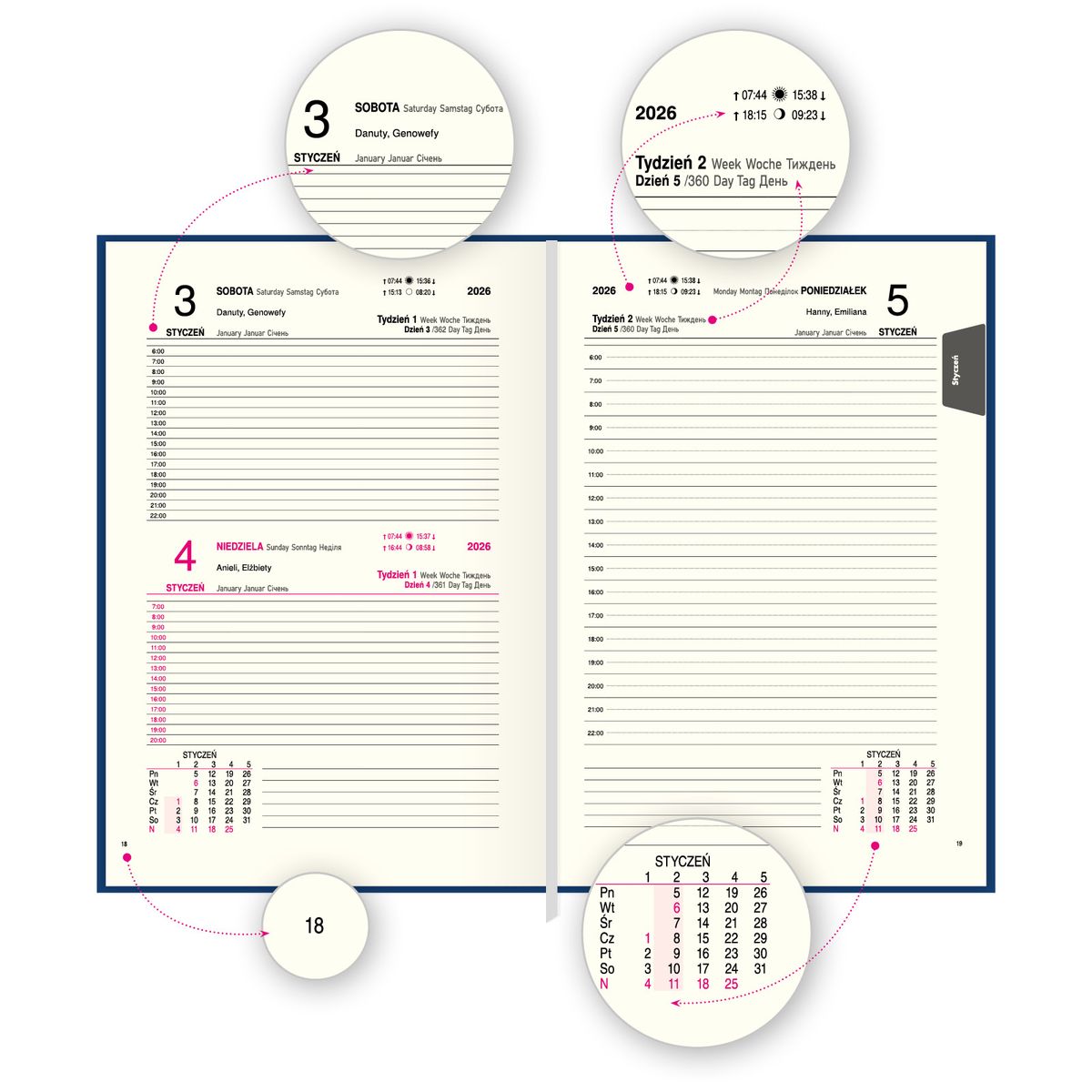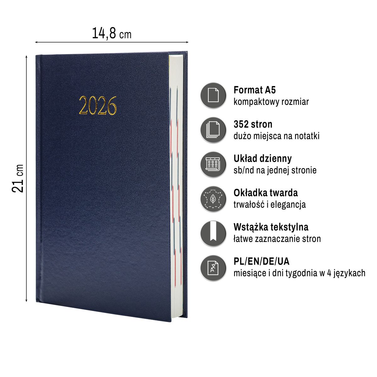 Kalendarz książkowy (terminarz) EKONOMICZNY A5 Press (DZIENNY)