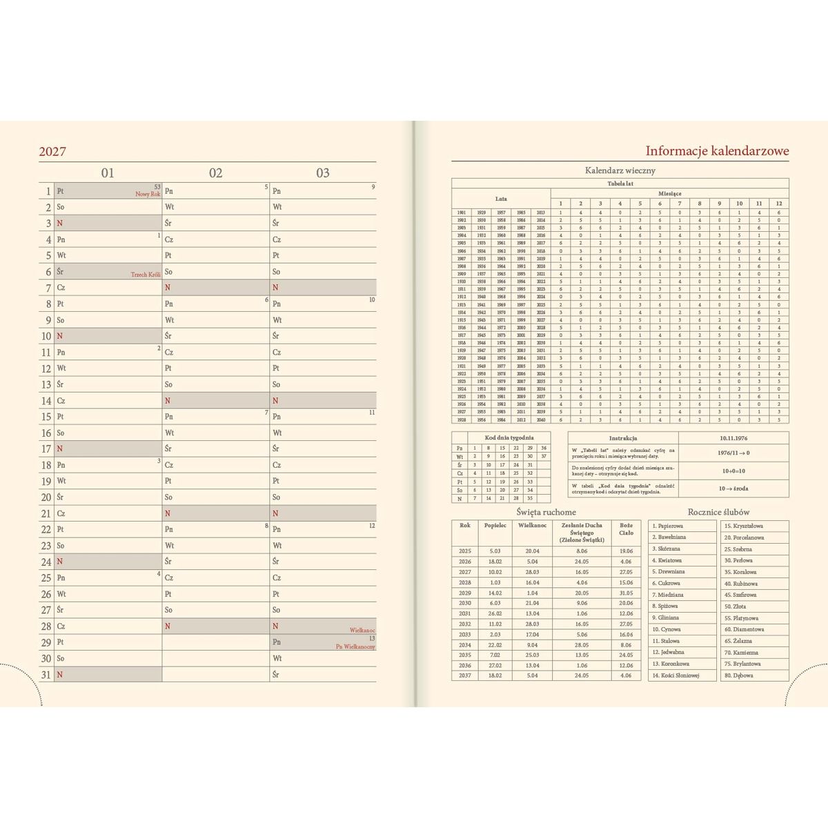 Dostępne: 9 Sztuk Lub zamów telefoniczne: 690 216 578Przygotowaliśmy dla Państwa elegancki i praktyczny kalendarz kieszonkowy, który pomoże w organizacji codziennego życia zawodowego i prywatnego. Dzięki niemu nie zapomnicie o ważnych terminach, spotkaniach czy rocznicach. Jego minimalistyczna estetyka sprawia, że będzie idealnym towarzyszem każdego dnia. Zachęcamy do zakupu!