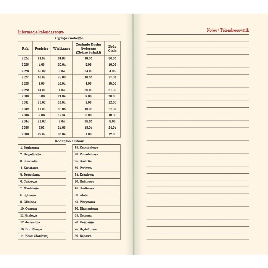 • kalendarium: PL, EN, DE, FR, UA • dostępne w wielu wzorach okładki
