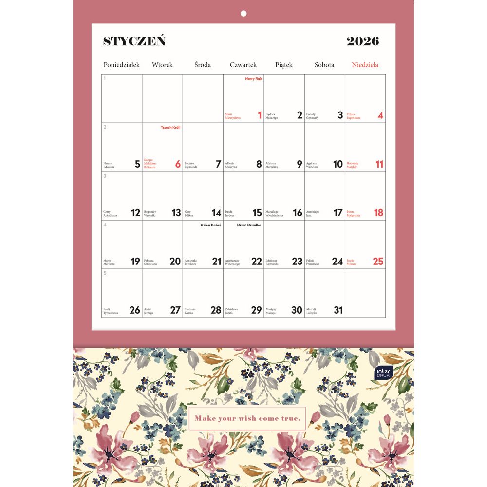 Kalendarz ścienny BLOSSOM 280mm x 400mm Interdruk (z kieszenią)