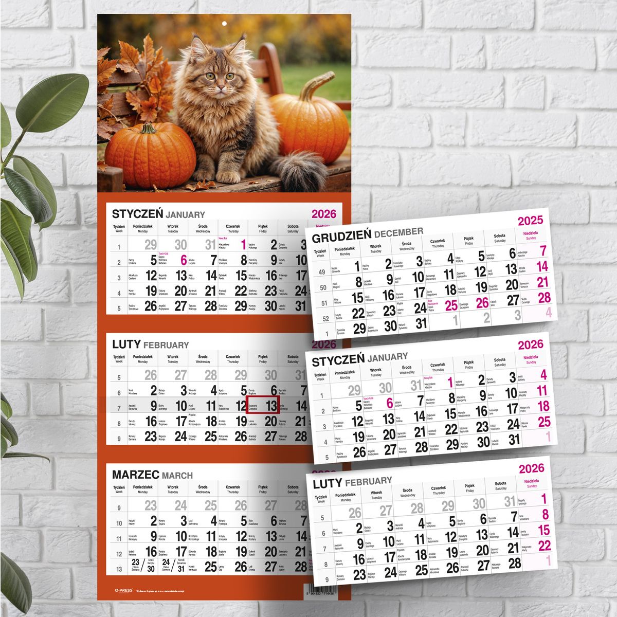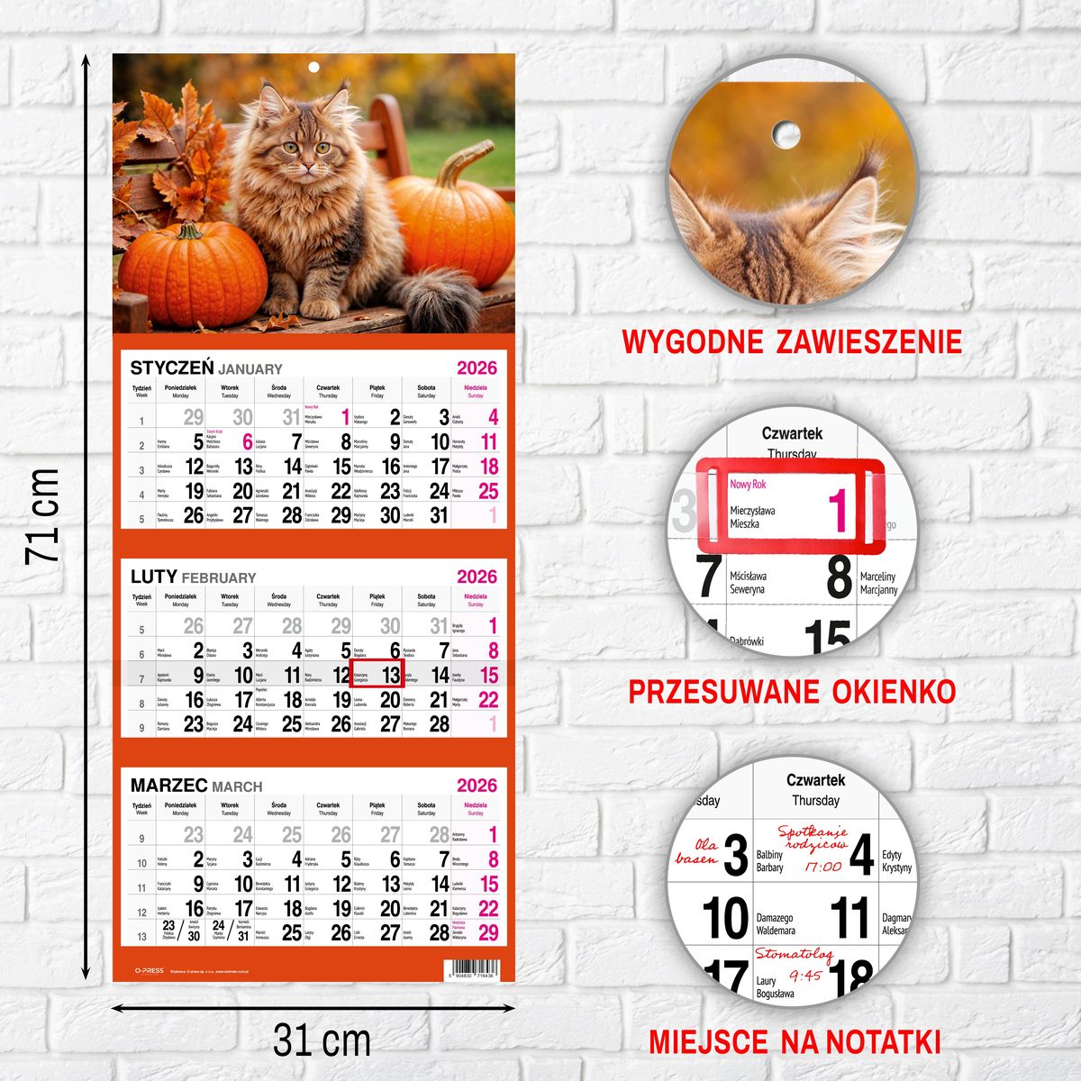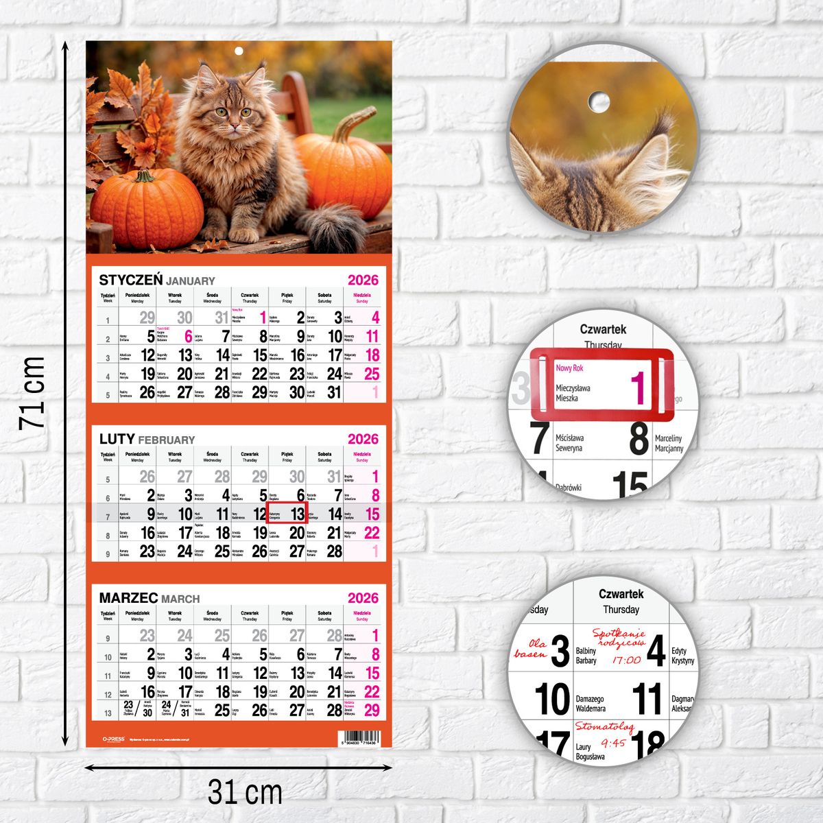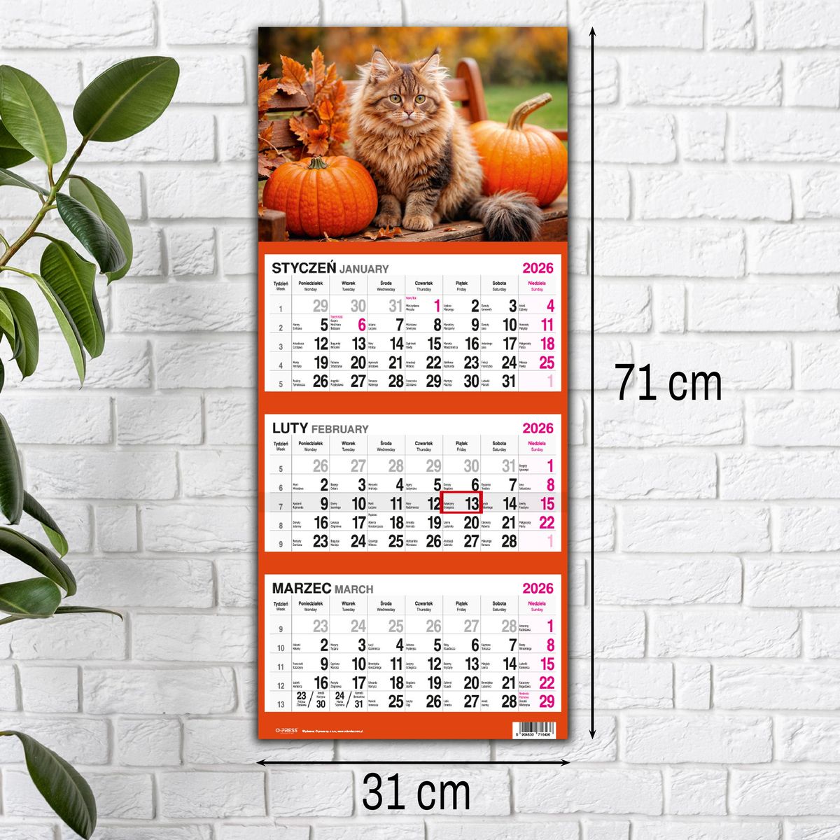 Kalendarz ścienny KOT 310mm x 790mm Press