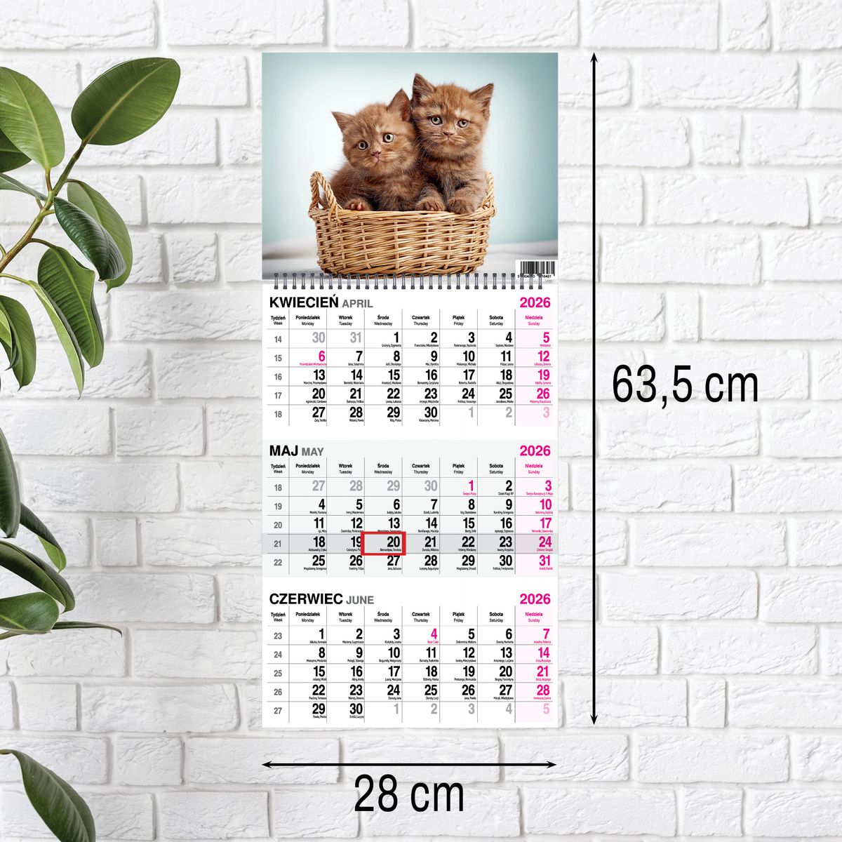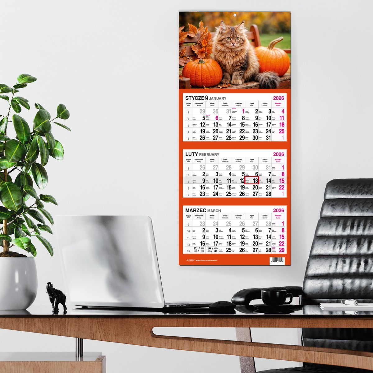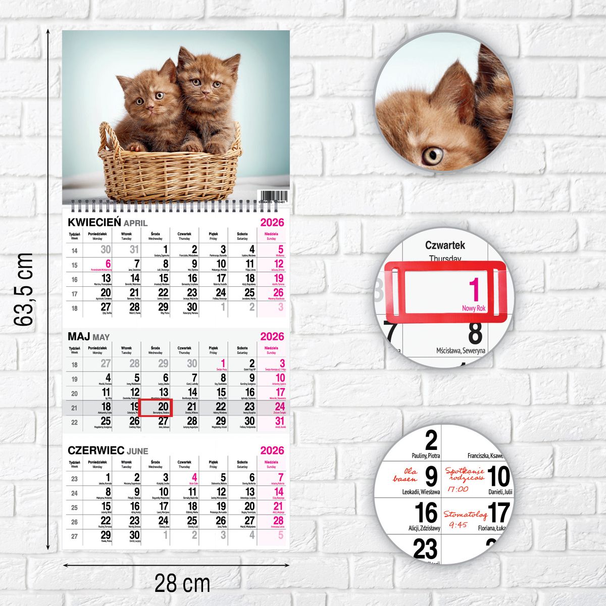 Kalendarz ścienny KOT 310mm x 790mm Press