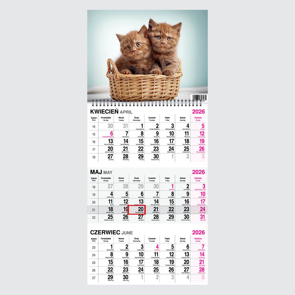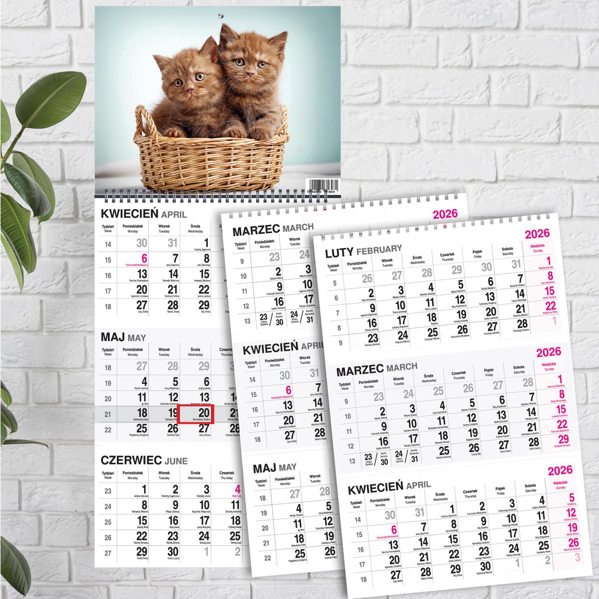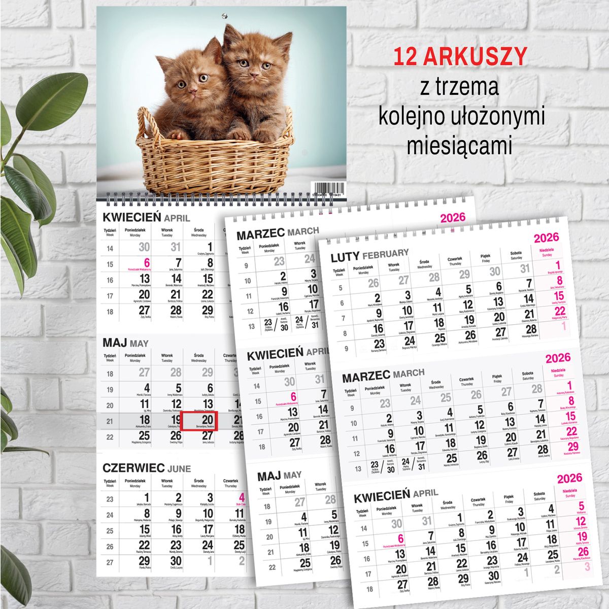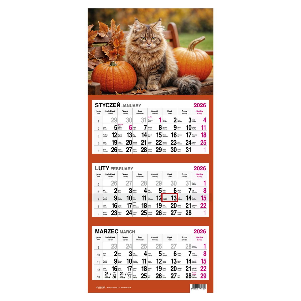 Kalendarz ścienny KOT 310mm x 790mm Press