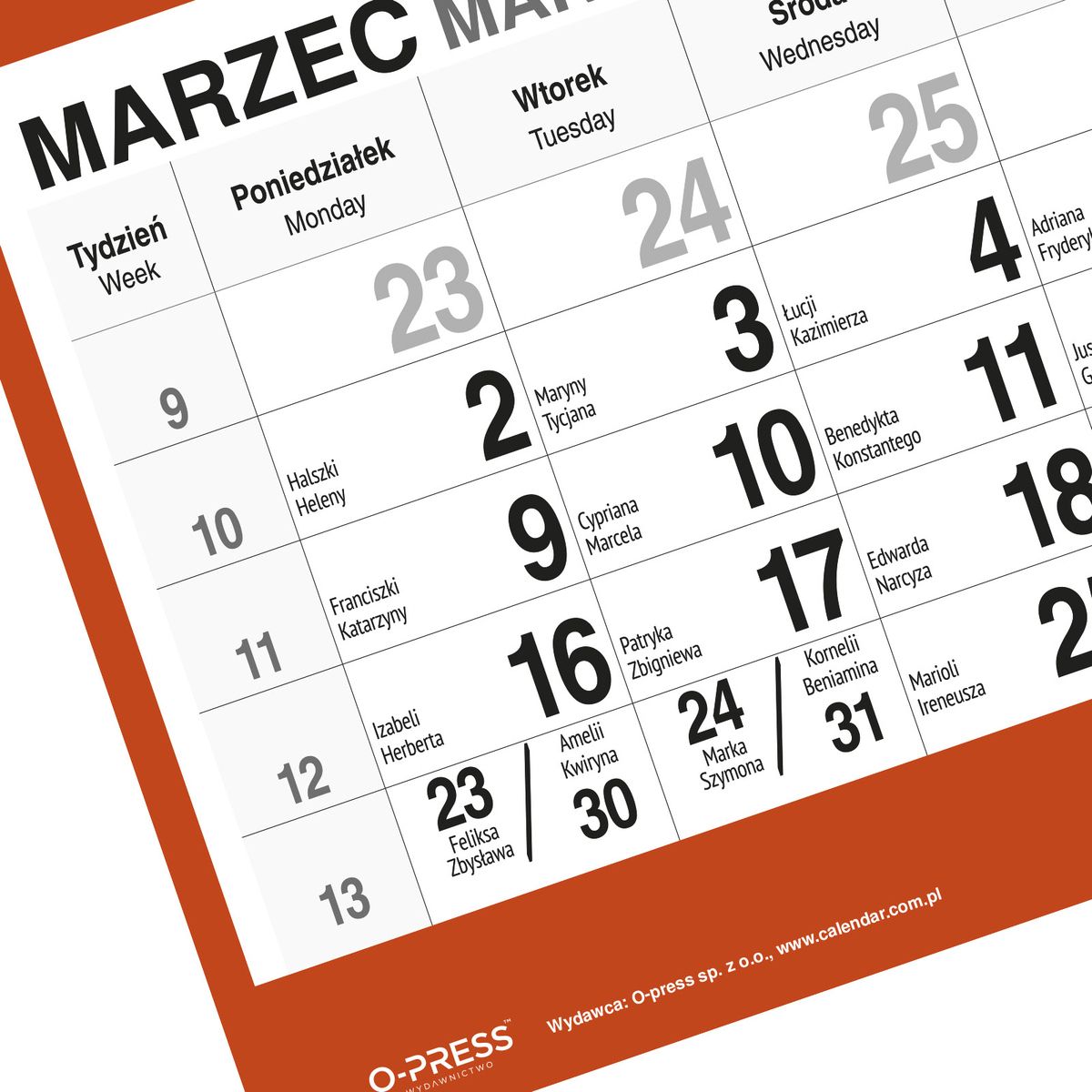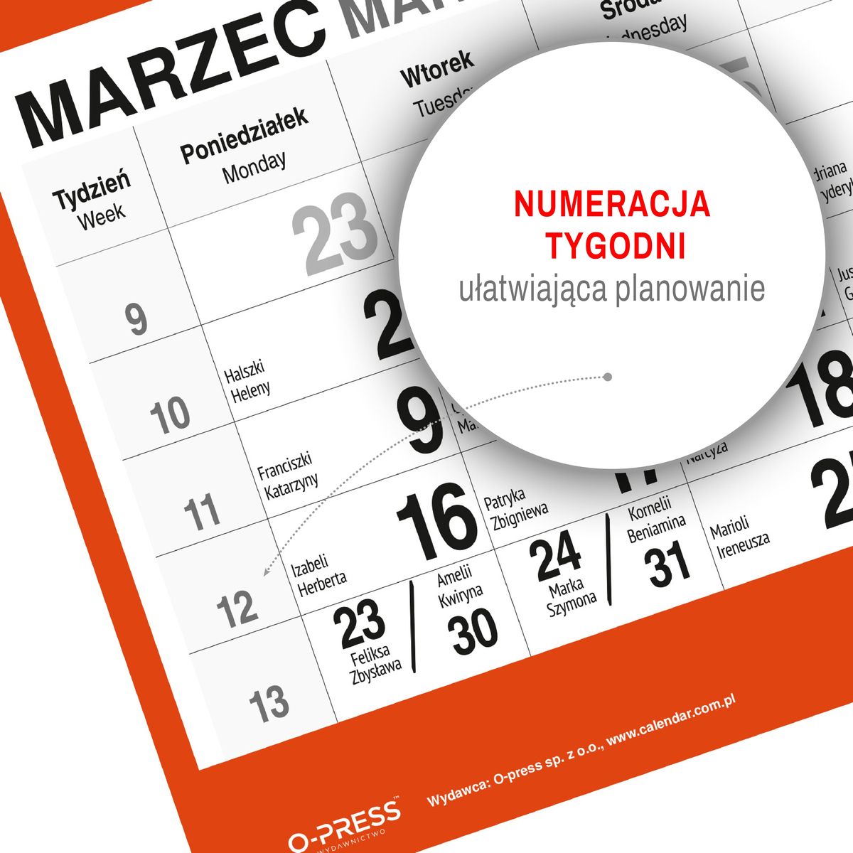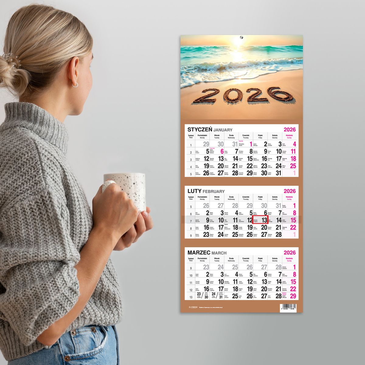 Wyposażony w wytrzymałą dziurkę, kalendarz można łatwo i bezpiecznie zawiesić na ścianie, zapewniając jego widoczność oraz dostępność w każdej chwili. Format 310x790x4 mm gwarantuje czytelność kalendarium oraz komfort użytkowania.