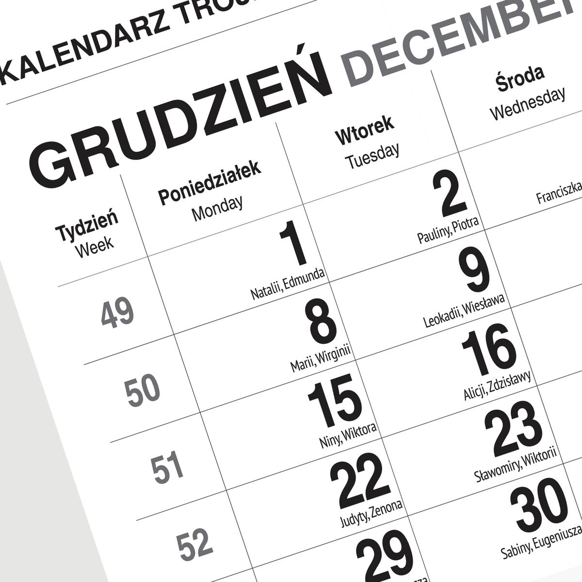 Dostępne: 19 Sztuk Lub zamów telefoniczne: 690 216 578Kalendarz Trójdzielny to niezastąpione narzędzie dla każdego, kto pragnie mieć pełną kontrolę nad swoimi terminami. Zaprojektowany z myślą o funkcjonalności i estetyce, oferuje jednoczesny wgląd w trzy miesiące - bieżący oraz dwa poprzednie - co czyni go wyjątkowo pomocnym w planowaniu i analizowaniu wcześniejszych wydarzeń.