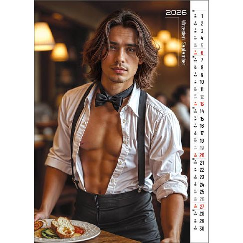 KALENDARZ: składa się z okładki, 12 kart papieru kredowego ze zdjęciami i kalendarium (trójjęzyczne z numeracją tygodni) oraz kartonowych plecków, wystających o 5 cm poza dolny brzeg kalendarza. Nadruk wykonywany jest na wystającym fragmencie plecków.