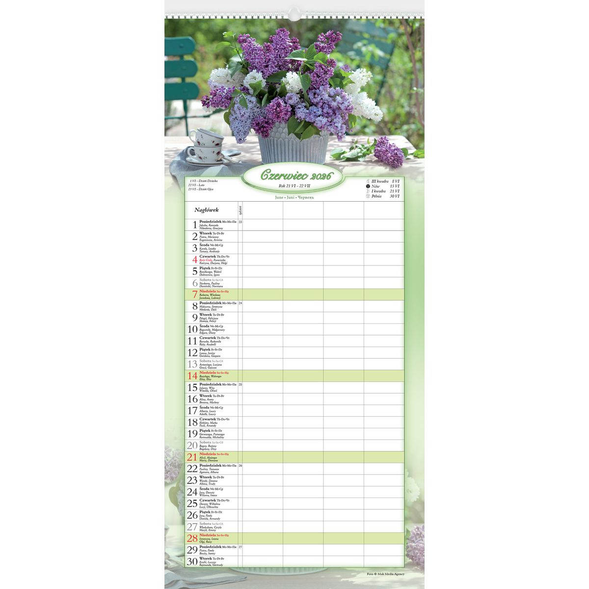 Dostępne: 9 Sztuk Lub zamów telefoniczne: 690 216 578format kalendarza: 22 x 49 cm;