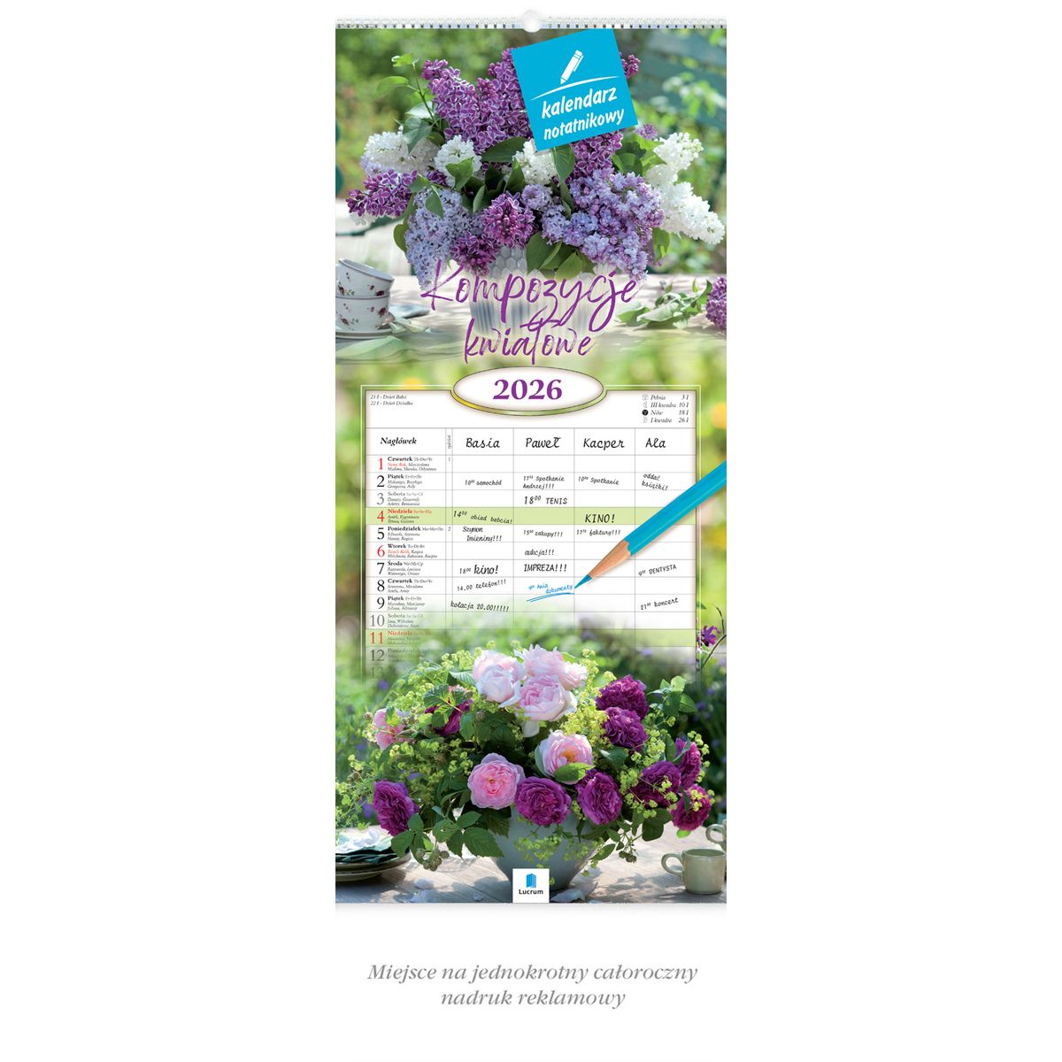 Kalendarz ścienny notatnikowy 2024 KOMPOZYCJA KWIATOWE 220mm x 490mm Lucrum (WN02)