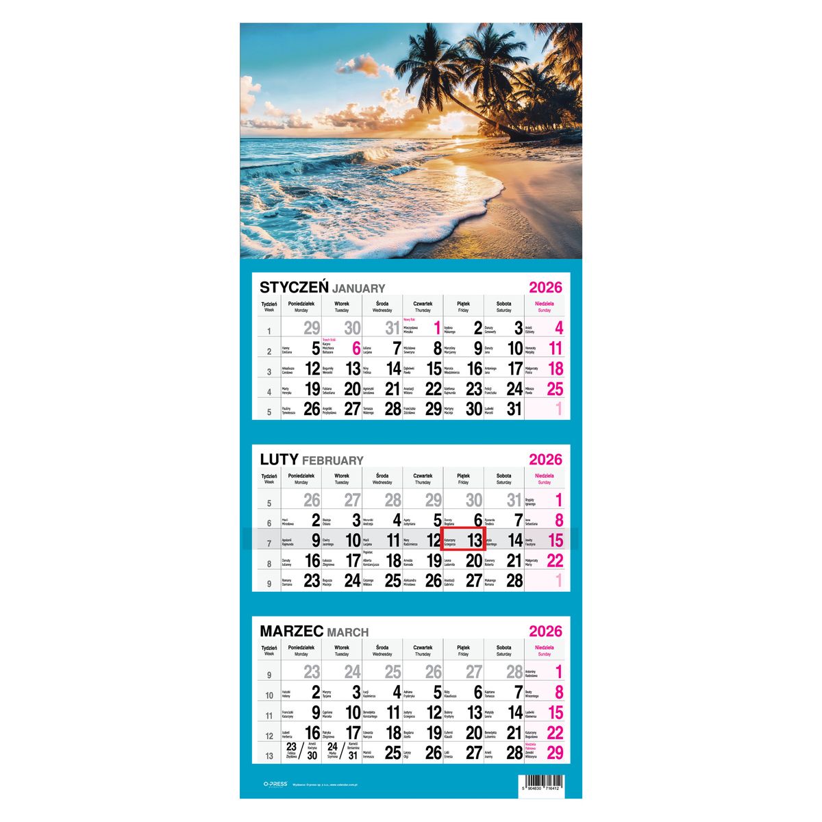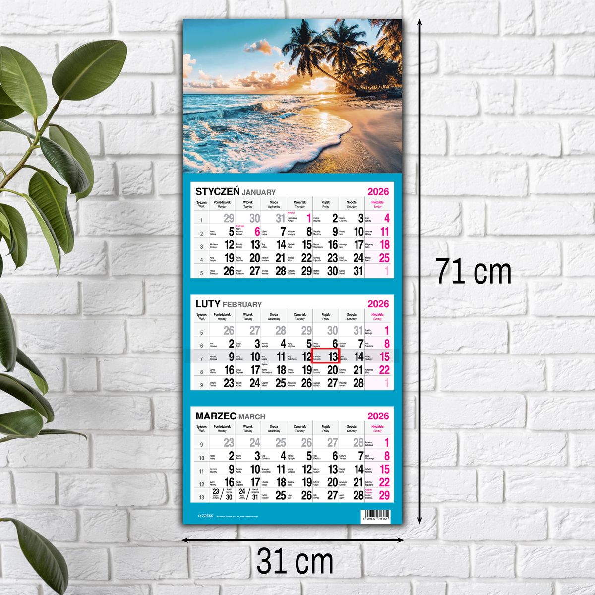 Kalendarz ścienny PALMY 310mm x 790mm Press