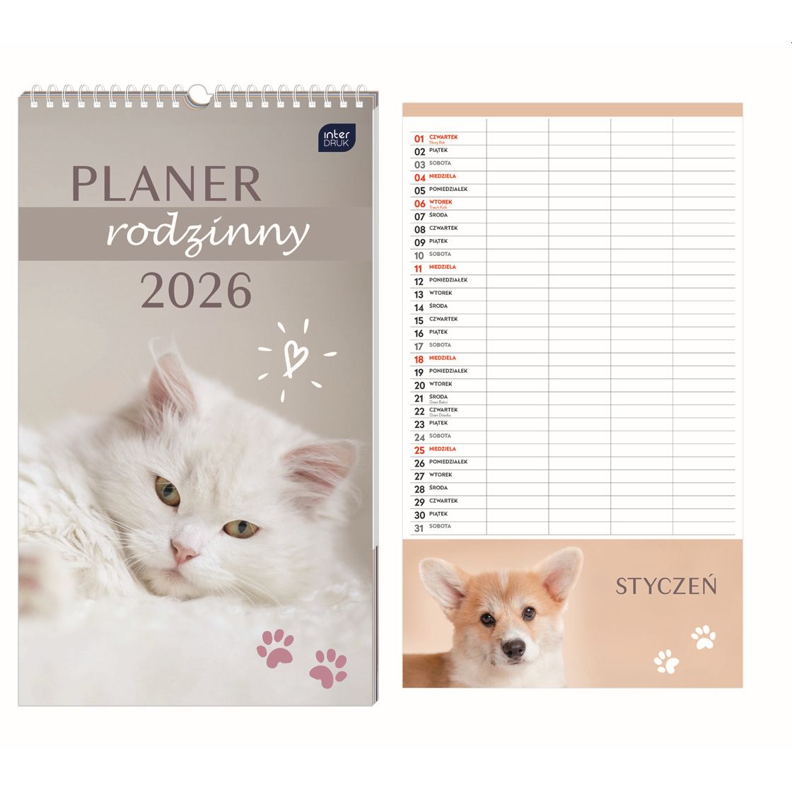 Kalendarz ścienny PLANER RODZINNY 250mm x 430mm Interdruk (Zwierzaki)