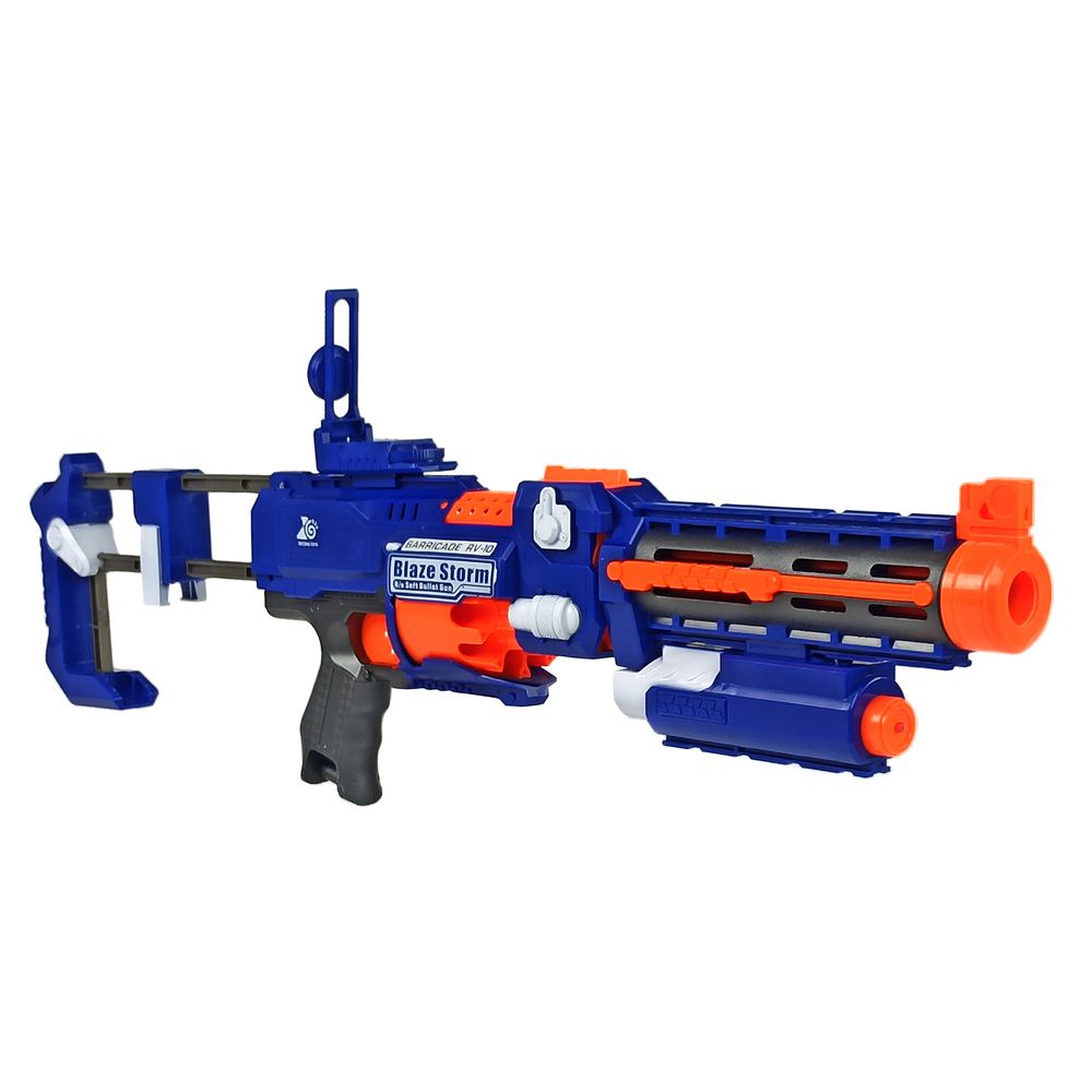 Rolkowy Karabin na Strzałki Piankowe to potężny kawał zabawki. Jego konstrukcja jest masywna, dzięki czemu można go trzymać na wiele różnych sposobów. Broń wyposażona jest w dwie szyny umożliwiające montaż dodatkowych akcesoriów. Jedna z nich znajduje się pod lufą, dzięki czemu zamontować można uchwyt pozwalający na mocniejsze złapanie zabawki, wyposażony jednocześnie w czerwoną lampkę. Tylna część składa się z odczepianej kolby umożliwiającej oparcie karabinu o ramię, natomiast w górnej części znajduje się szyna z zamontowanym celownikiem. Magazynek broni posiada mechanizm bębenkowy z otwartymi komorami, dzięki czemu można go na bieżąco doładowywać. Nad magazynkiem znajduje się przesuwane okienko, dzięki któremu można zajrzeć do komory naboju aby w przypadku jego zacięcia bezproblemowo go usunąć. W dolnej części uchwytu broni znajduje się zaczep, do którego można przymocować karabińczyki umożliwiające wygodniejsze przenoszenie broni. Po odczepieniu celownika, dodatkowego uchwytu i kolby karabin może być w dalszym ciągu używany, stając się przy tym lżejszy i poręczniejszy.